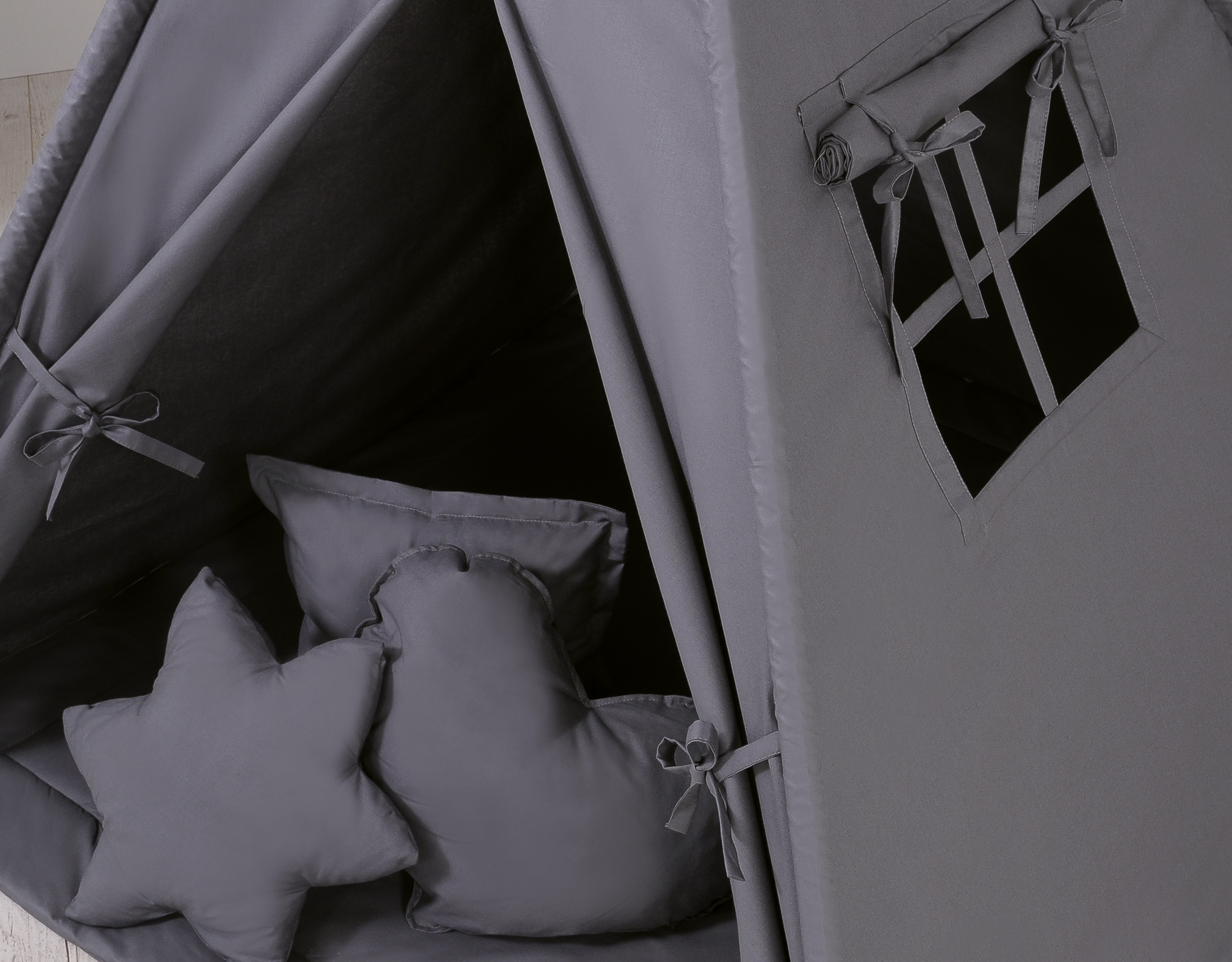Teepee tent for kids + playmat + pillows + decorative feathers – anthracite