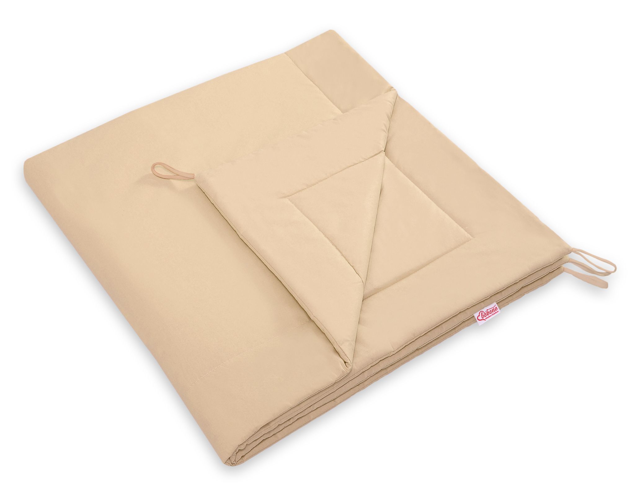 The Tipi tent is made from natural materials. The hem is sewn from high-quality, certified 100% cotton, the poles are made from pine wood. Double-sided mat, two-coloured, quilted, filled with soft anti-allergenic fleece. It is equipped with special straps that can be attached to the bottom of the frame so that the tent does not move and is therefore more stable and secure.