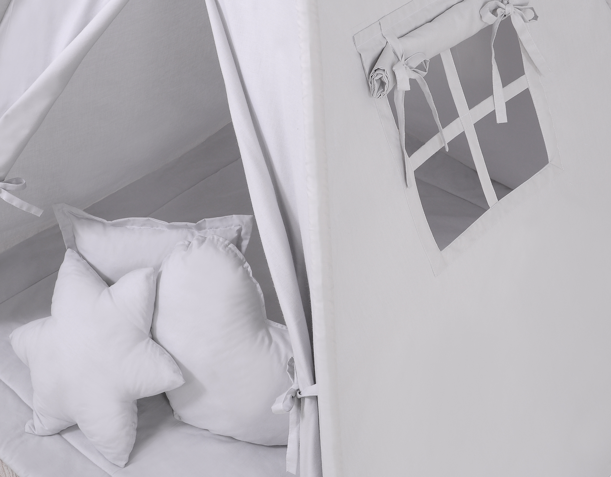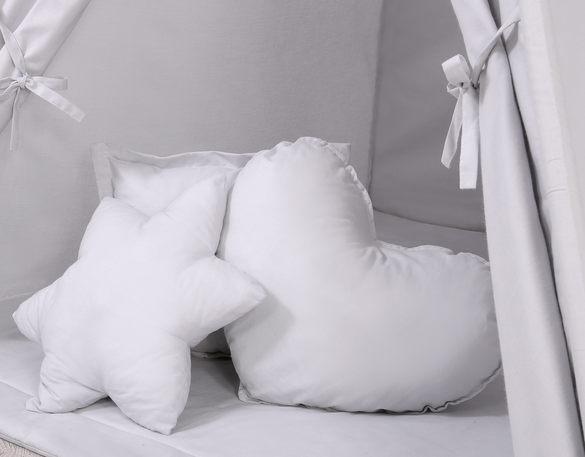 Includes a set of 3 pillows colour-coordinated with the tent in three different shapes: heart, star and square. Made from the highest quality certified 100% cotton, filled with special certified fibre – ECO FILLBALL.