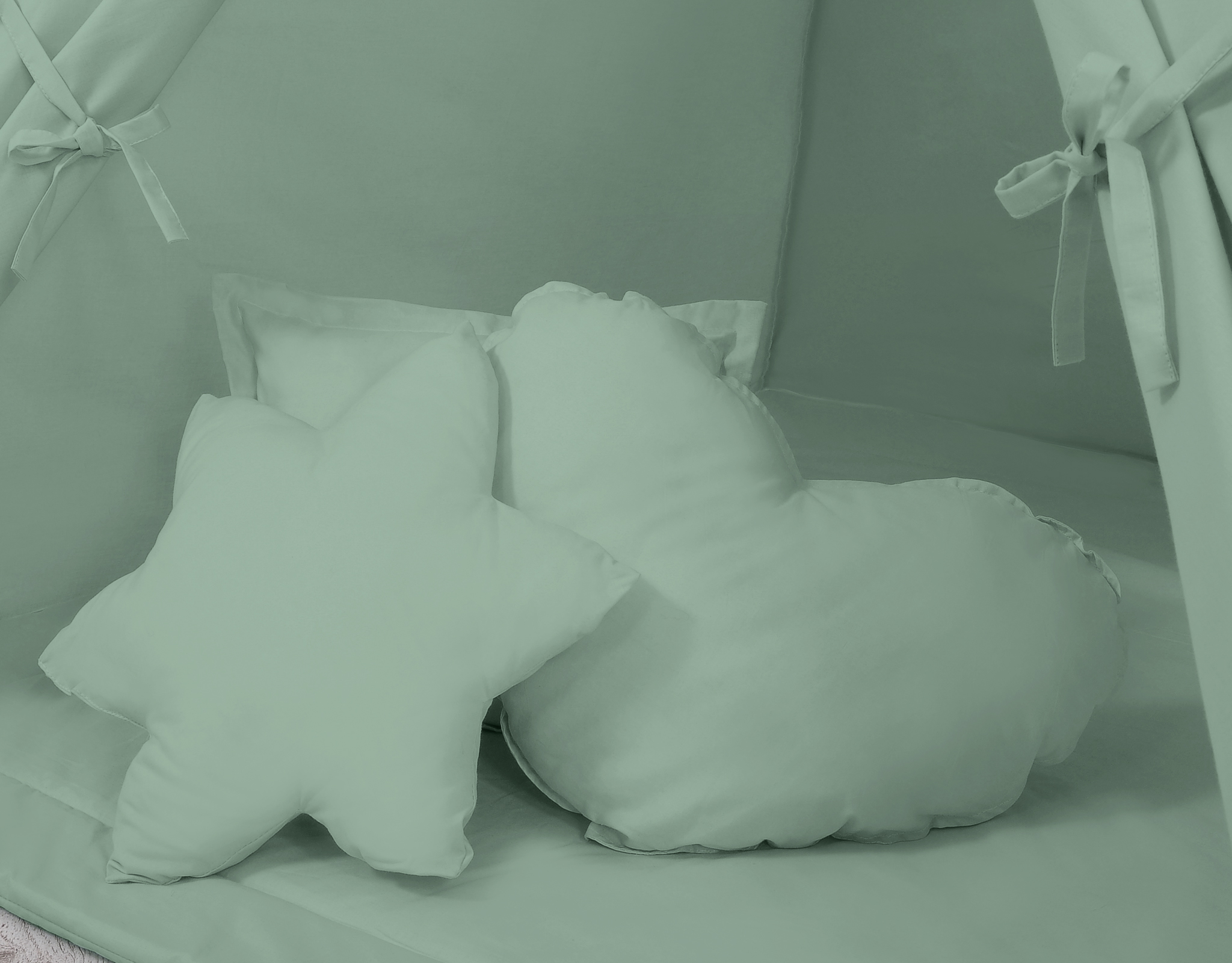 Teepee tent for kids + playmat + pillows + decorative feathers – pastel green