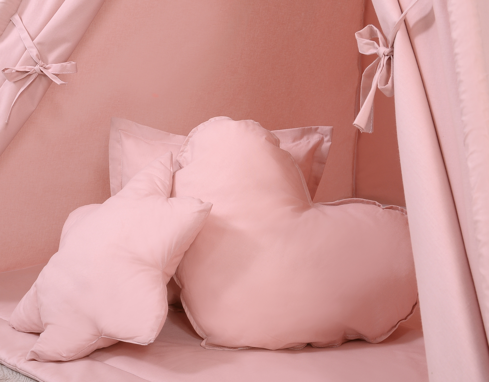 Includes a set of 3 pillows colour-coordinated with the tent in three different shapes: heart, star and square. Made from the highest quality certified 100% cotton, filled with special certified fibre – ECO FILLBALL.