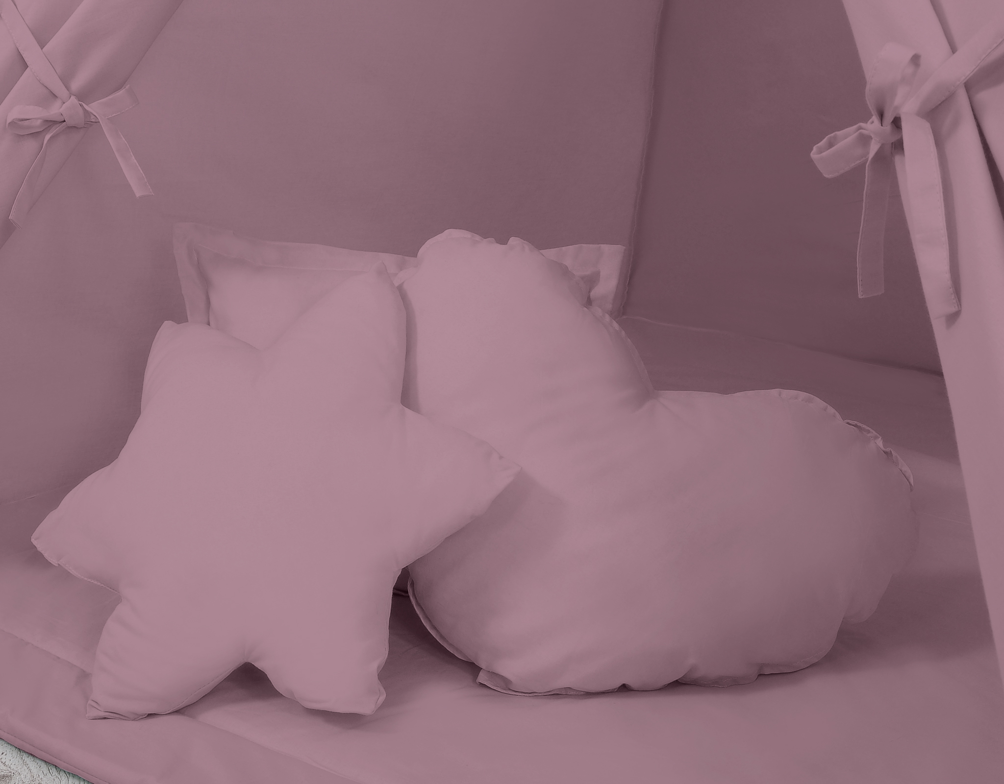 Includes a set of 3 pillows colour-coordinated with the tent in three different shapes: heart, star and square. Made from the highest quality certified 100% cotton, filled with special certified fibre – ECO FILLBALL.