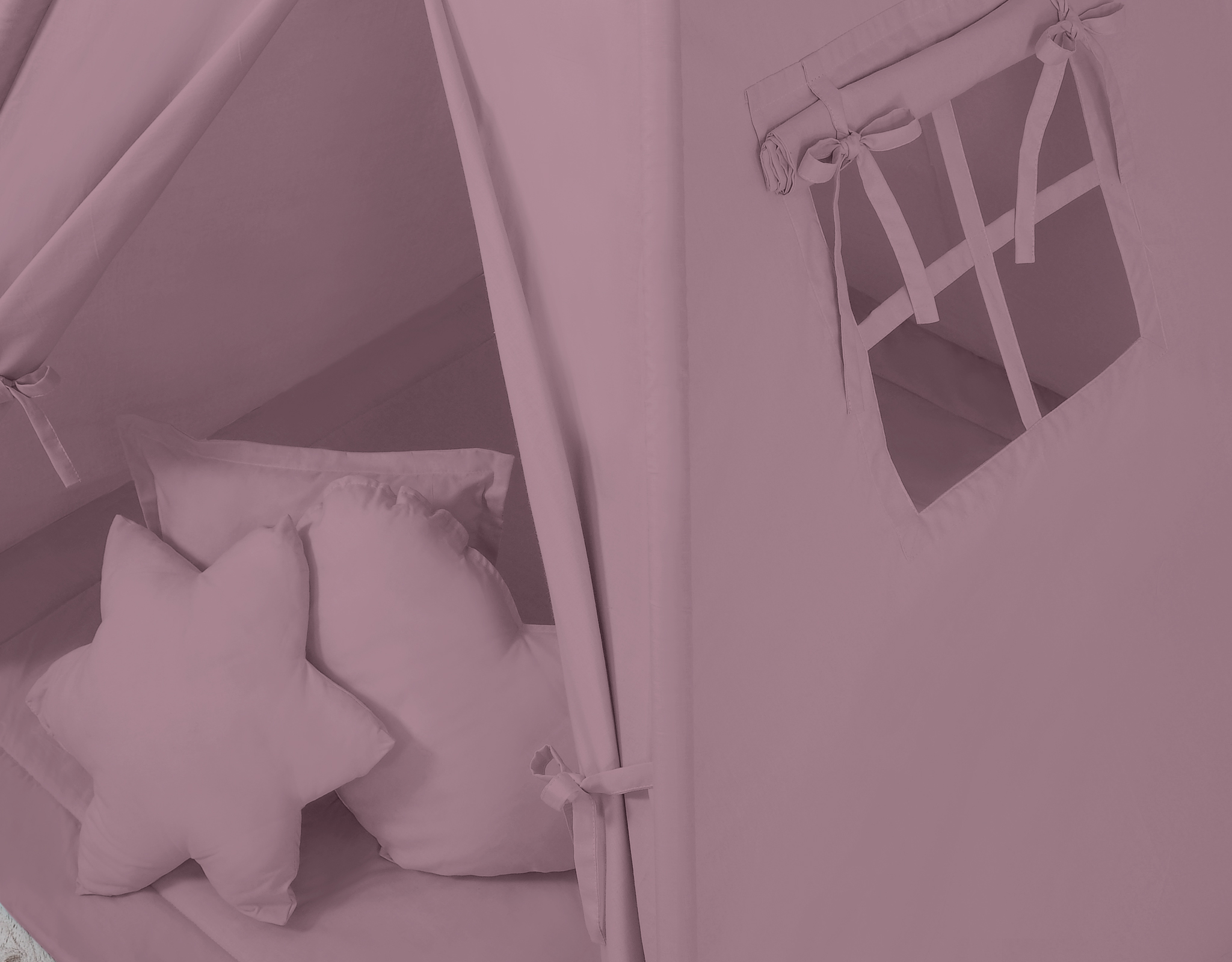 The Tipi tent is made from natural materials. The hem is sewn from high-quality, certified 100% cotton, the poles are made from pine wood. Double-sided mat, two-coloured, quilted, filled with soft anti-allergenic fleece. It is equipped with special straps that can be attached to the bottom of the frame so that the tent does not move and is therefore more stable and secure.