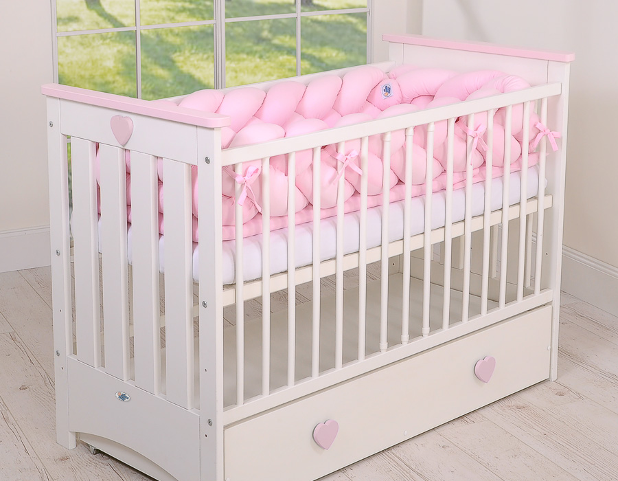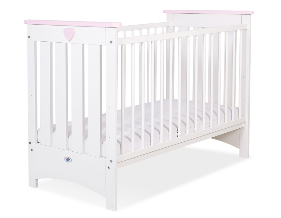 Wooden baby cot 120x60cm Lorenzo III white-pink, with teething rail