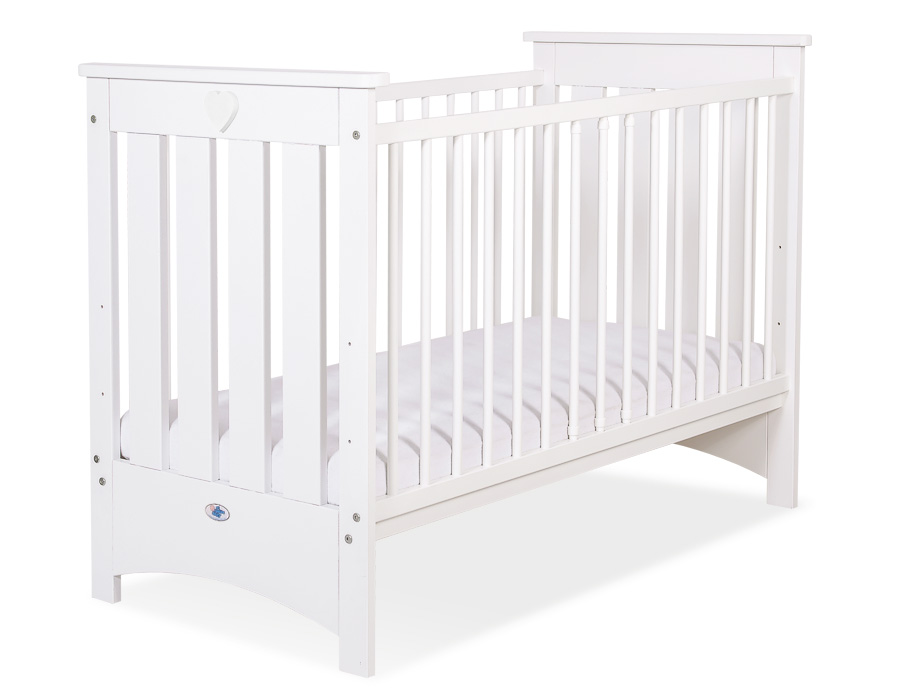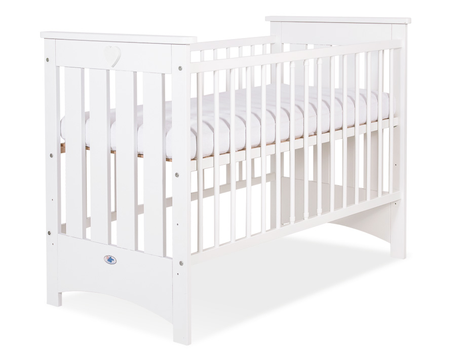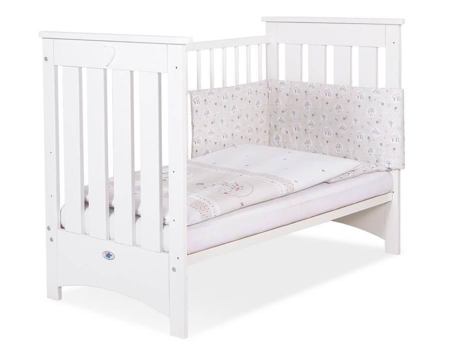 Wooden baby cot 120x60cm Lorenzo III white, with teething rail