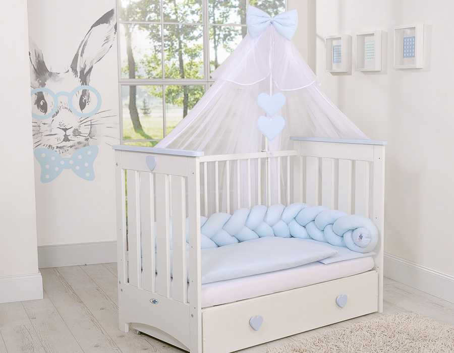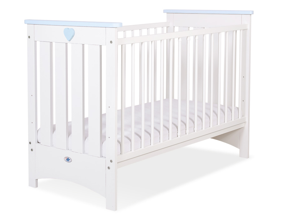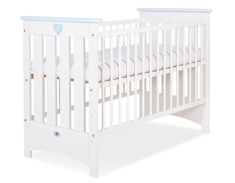 Wooden baby cot120x60cm Lorenzo III white-blue, with teething rail