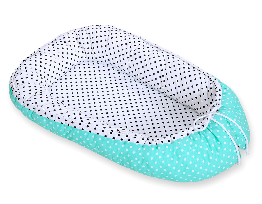 Baby nest double-sided Premium Cocoon for infants BOBONO – black dots white dots on mint
