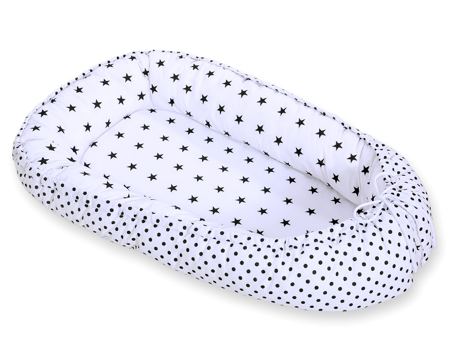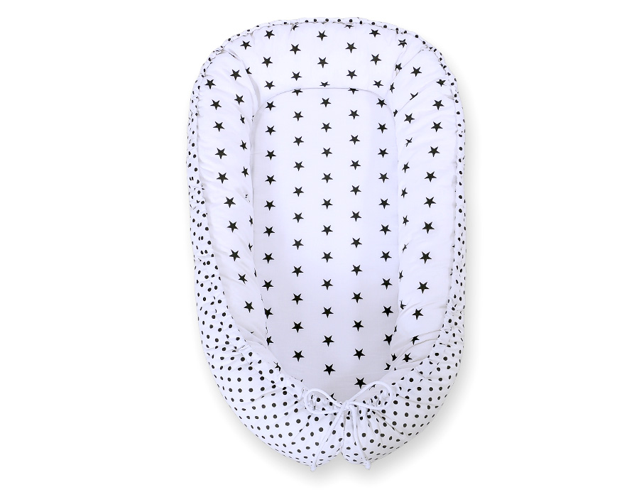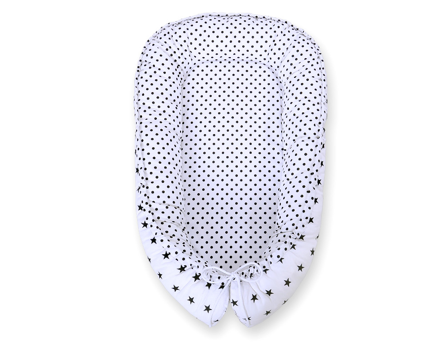 Baby nest double-sided Premium Cocoon for infants BOBONO- black stars/ dots