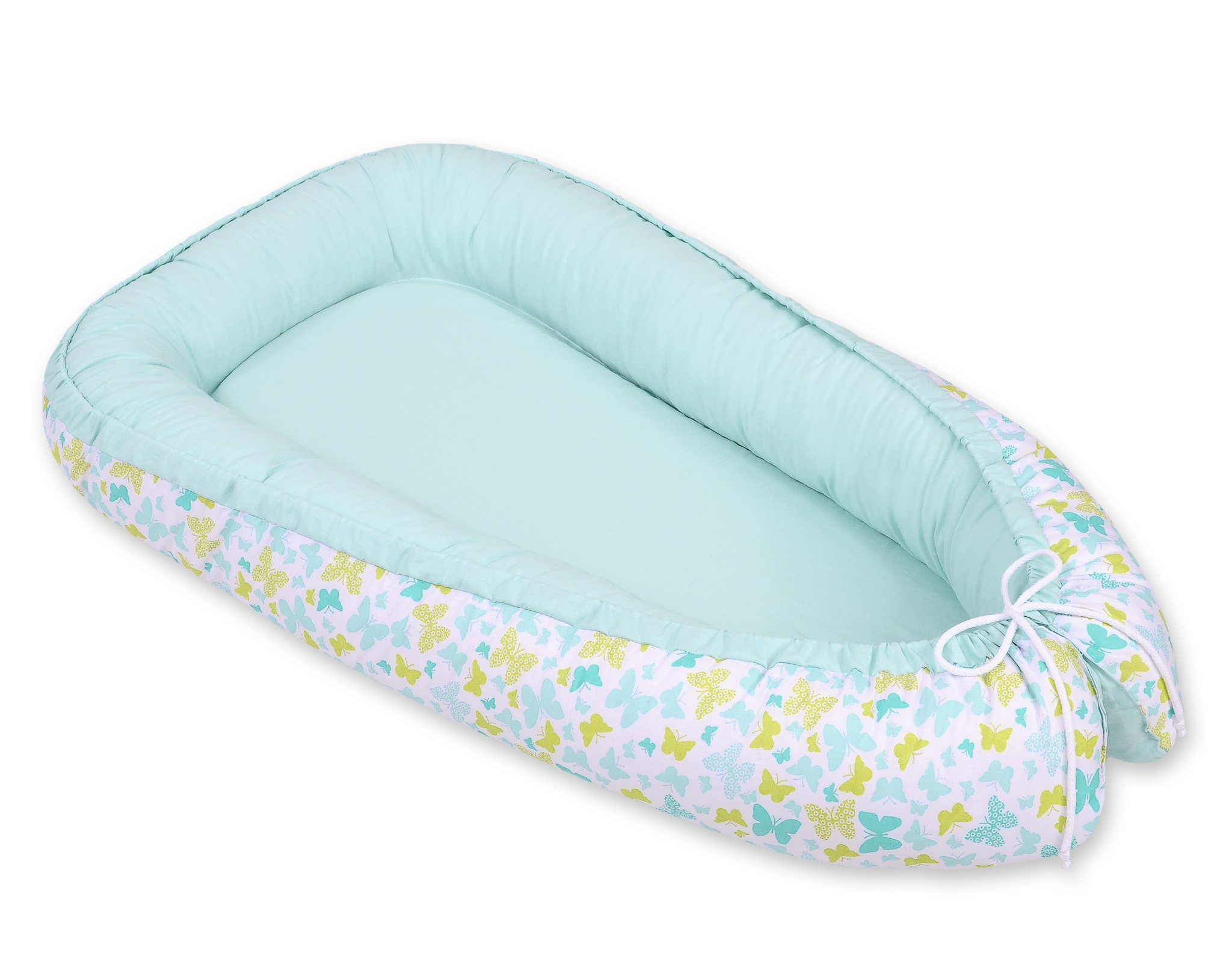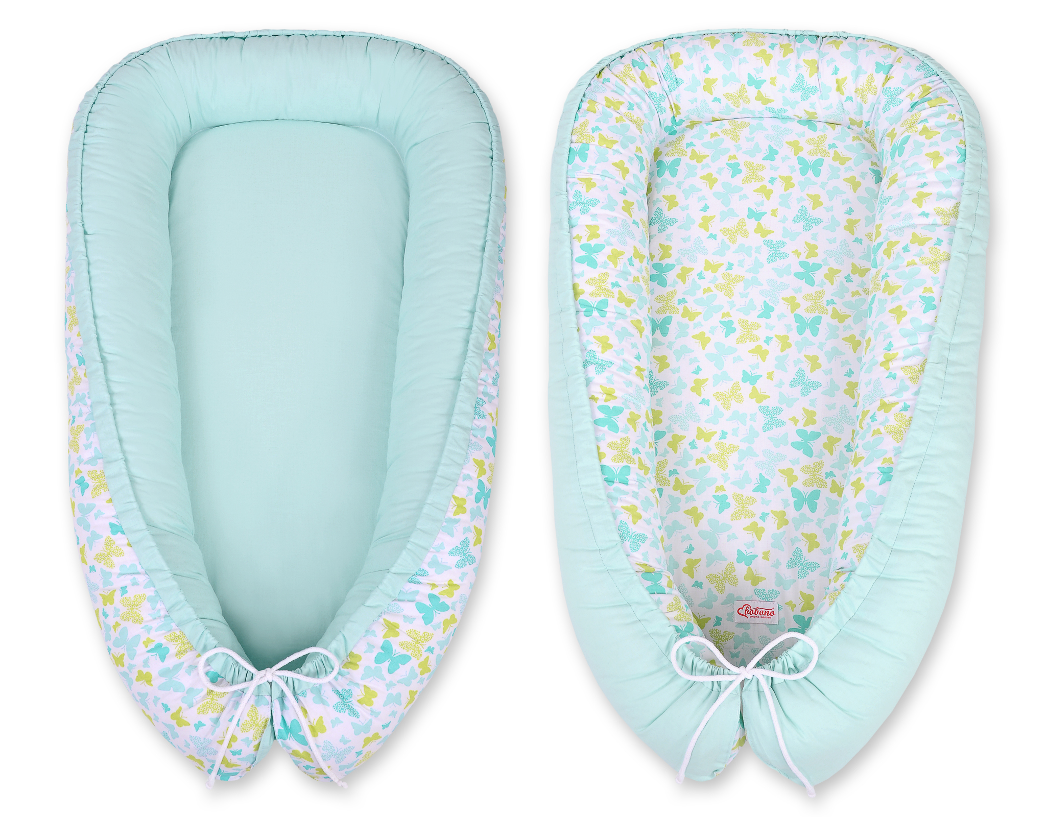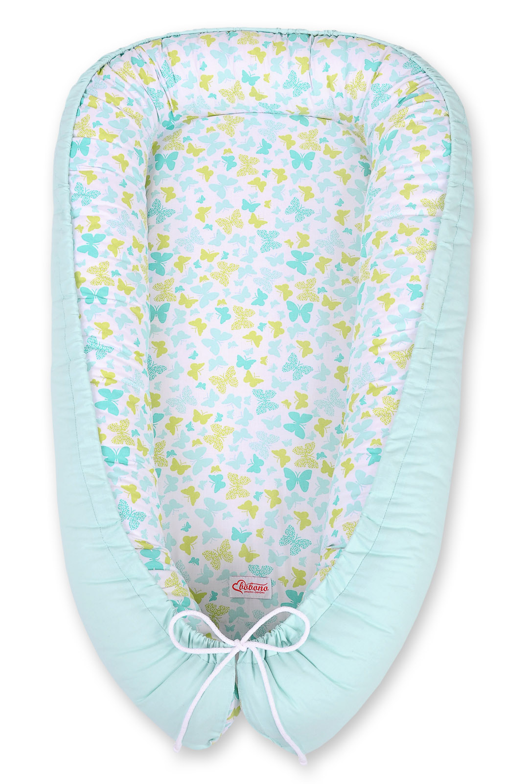 Baby nest double-sided Premium Cocoon for infants BOBONO- blue butterflies/mint