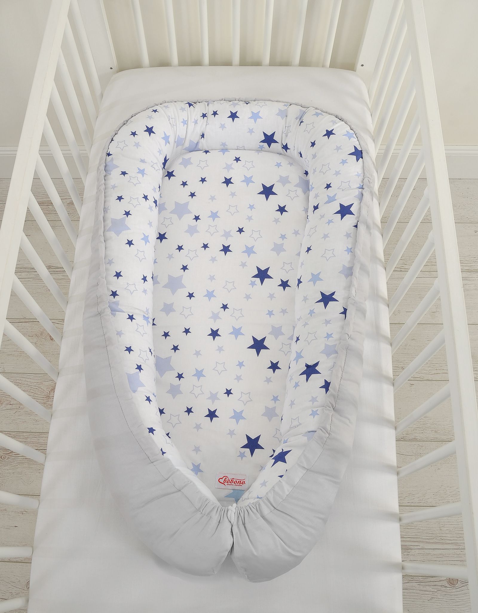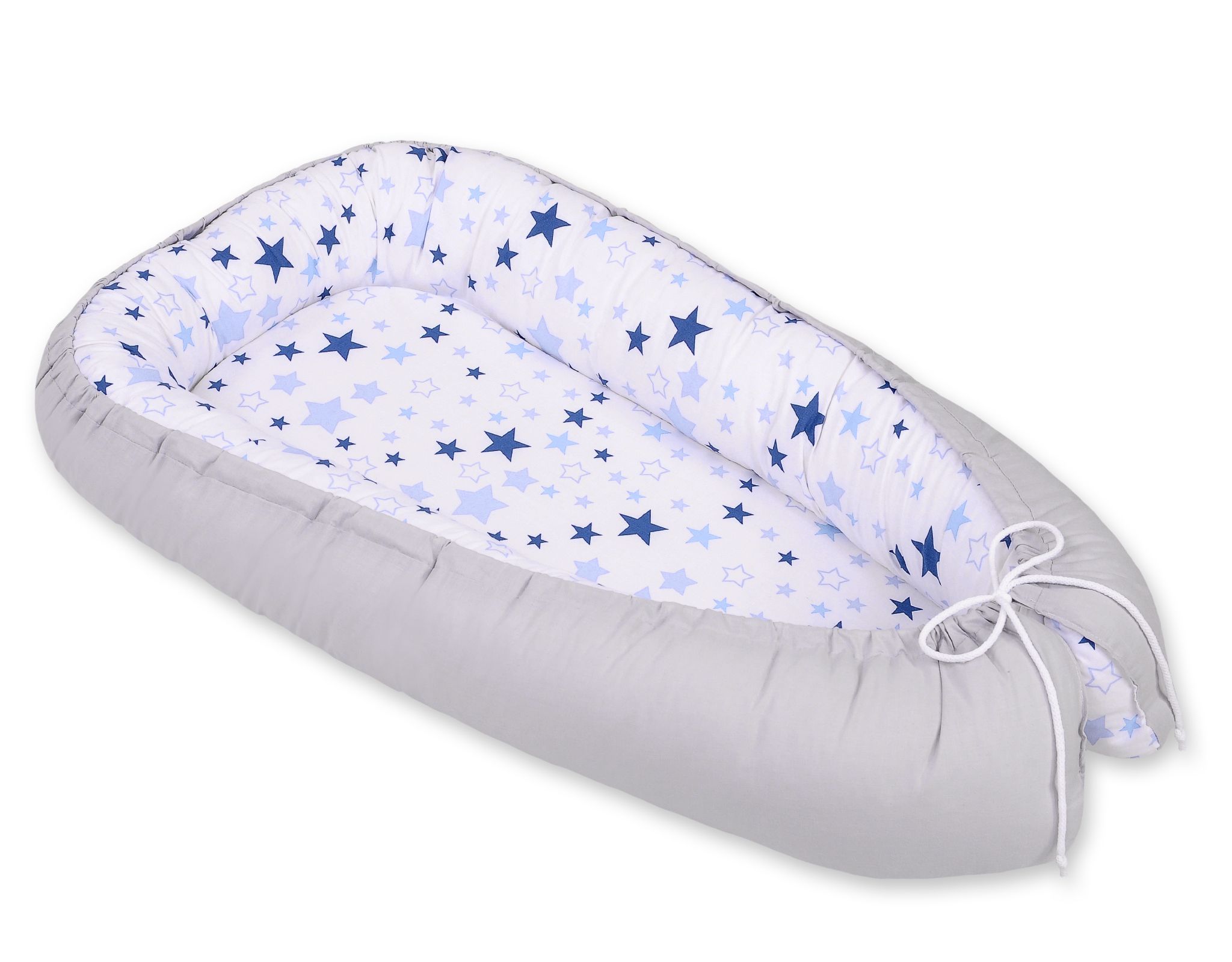 Baby nest double-sided Premium Cocoon for infants BOBONO- blue stars/gray
