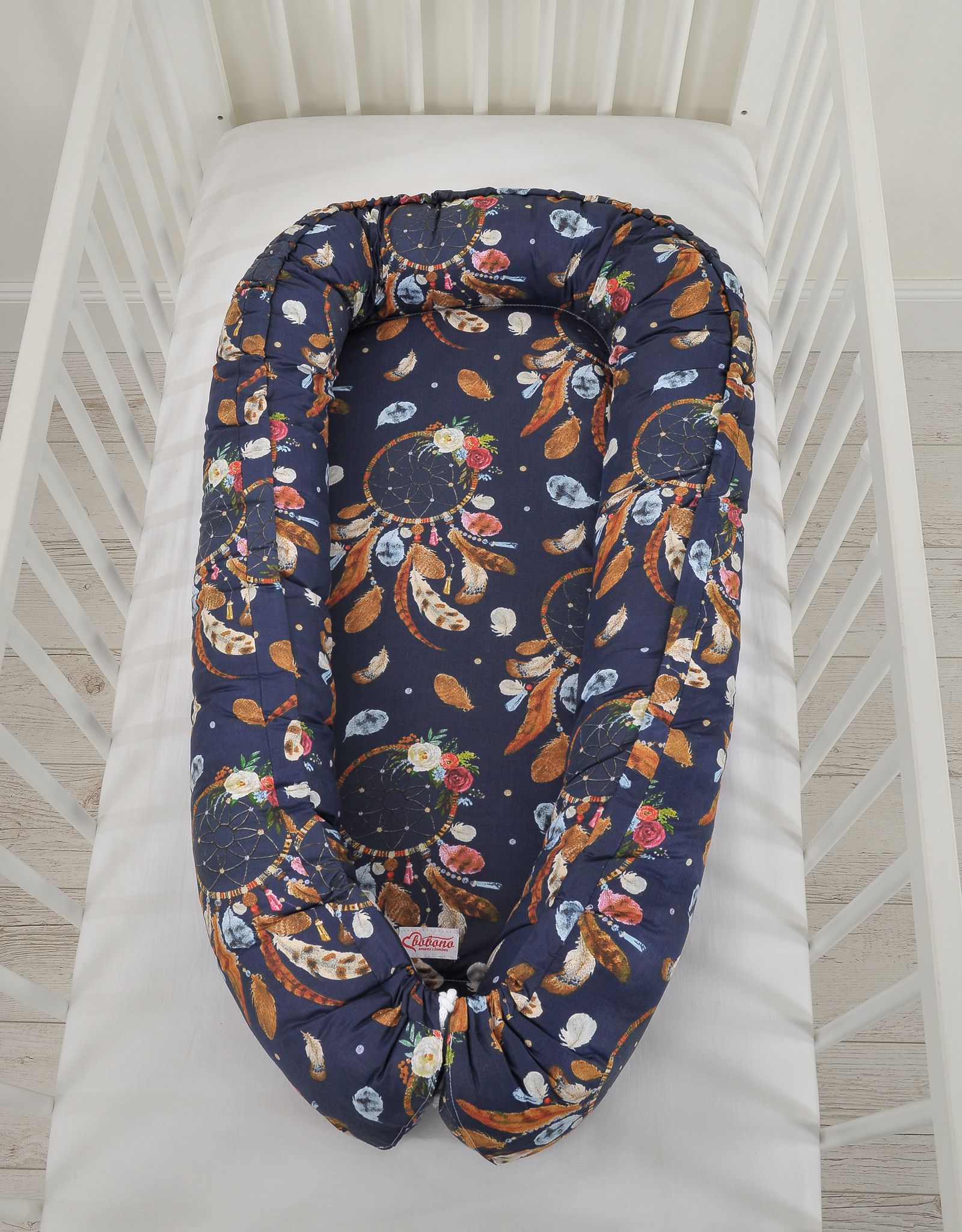 Baby nest double-sided Premium Cocoon for infants BOBONO- dream catchers dark blue
