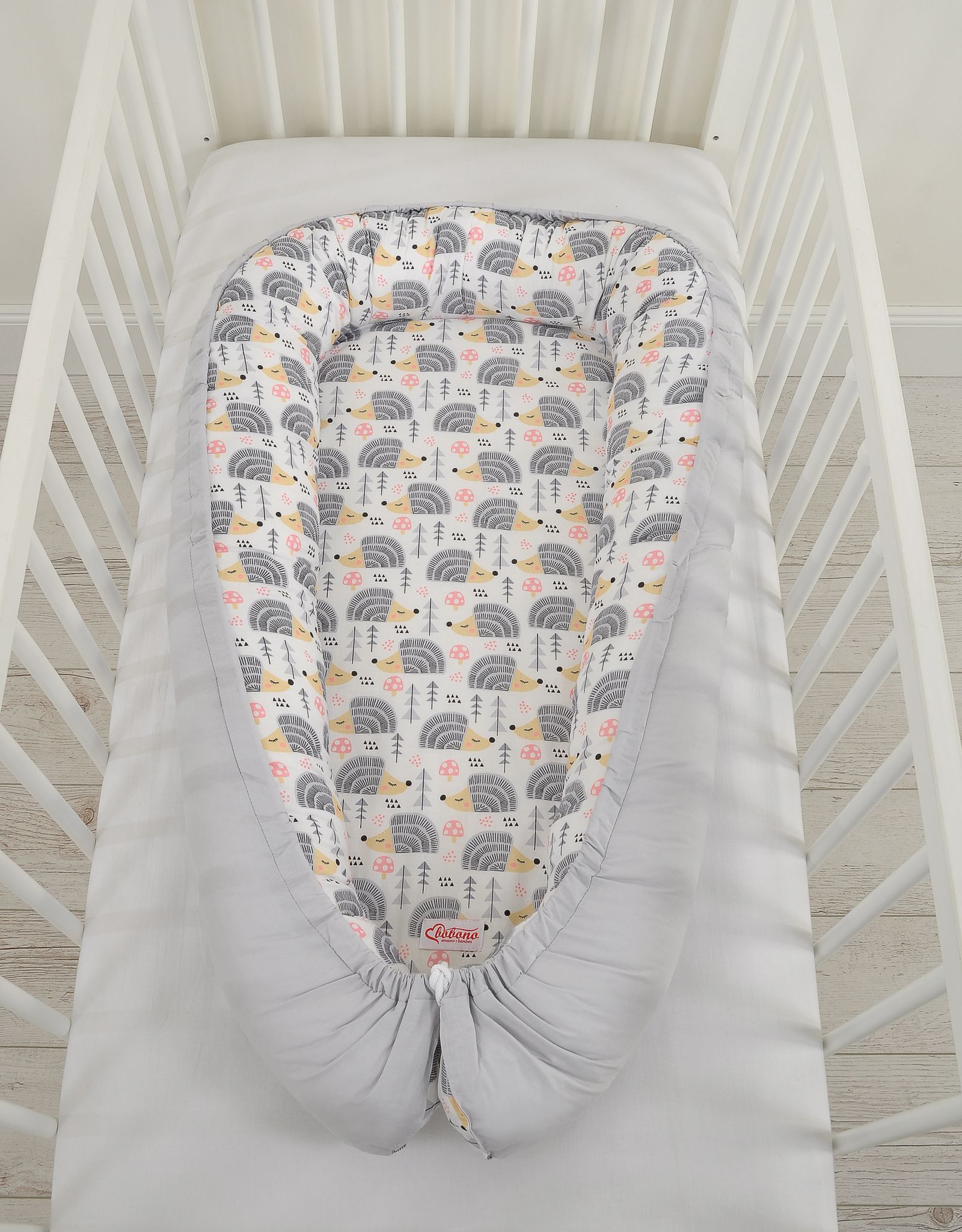 Baby nest double-sided Premium Cocoon for infants BOBONO- hedgehogs grey