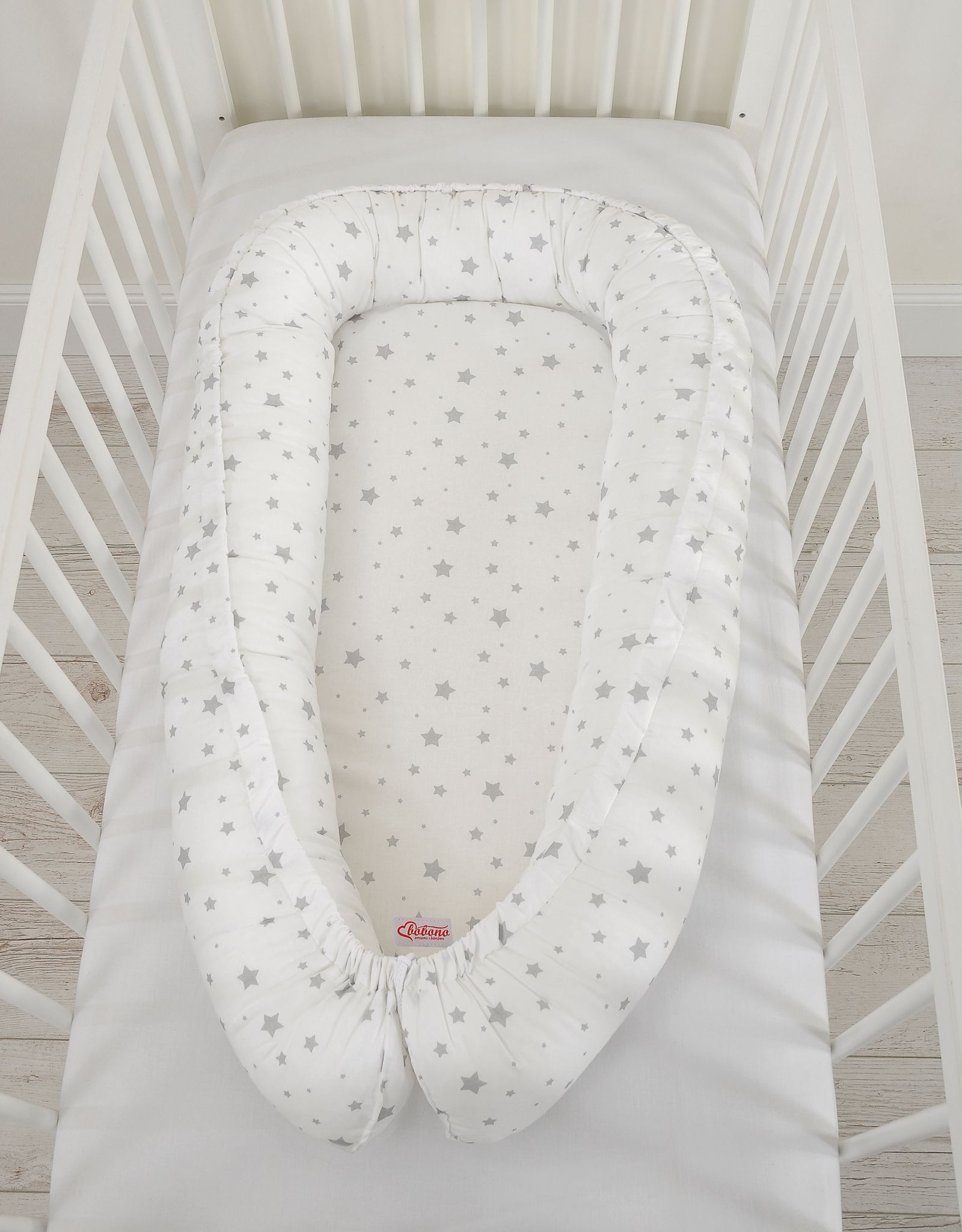 Baby nest double-sided Premium Cocoon for infants BOBONO- mini gray stars
