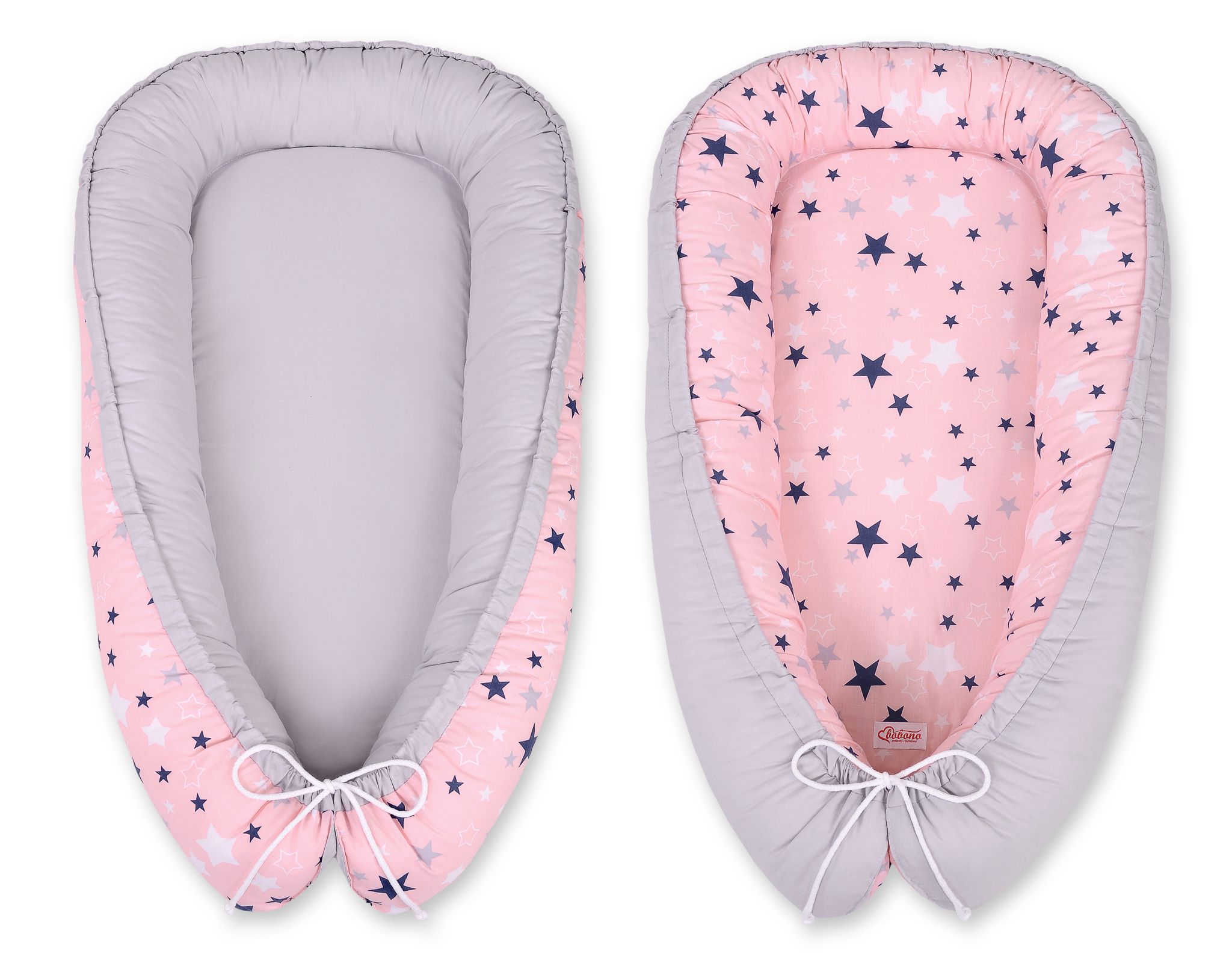 Baby nest double-sided Premium Cocoon for infants BOBONO- pink-navy blue stars