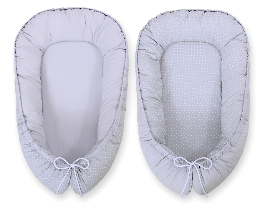 Baby nest double-sided Premium Cocoon for infants BOBONO- white polka dots on grey/grey