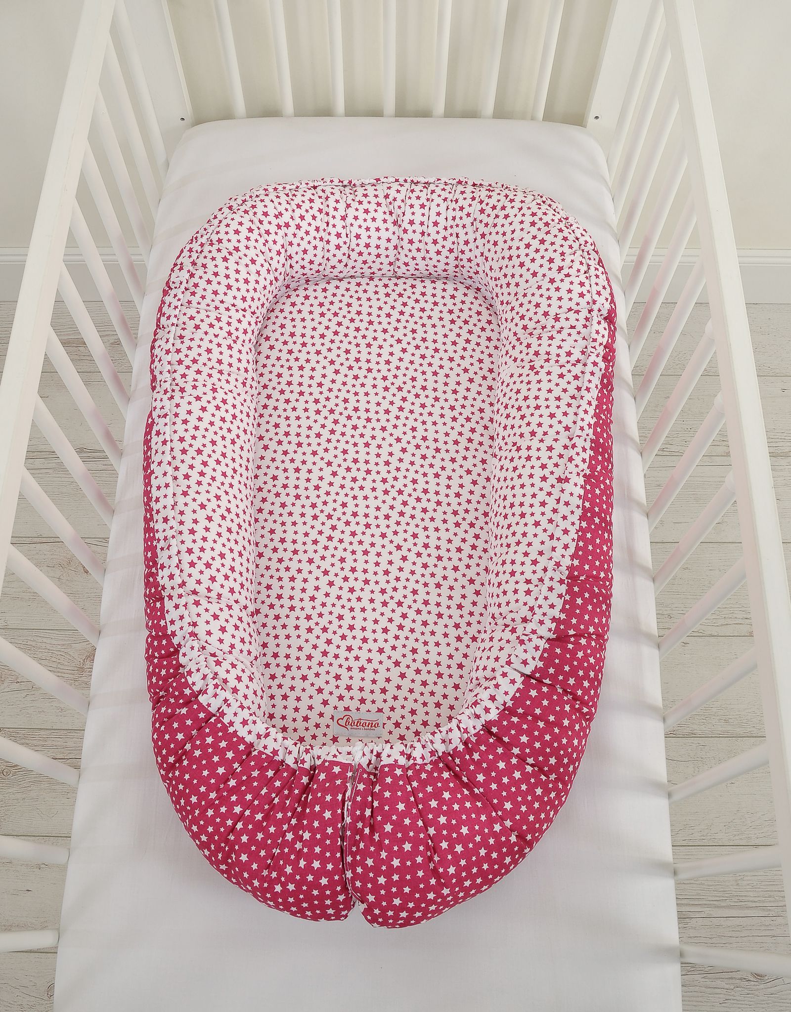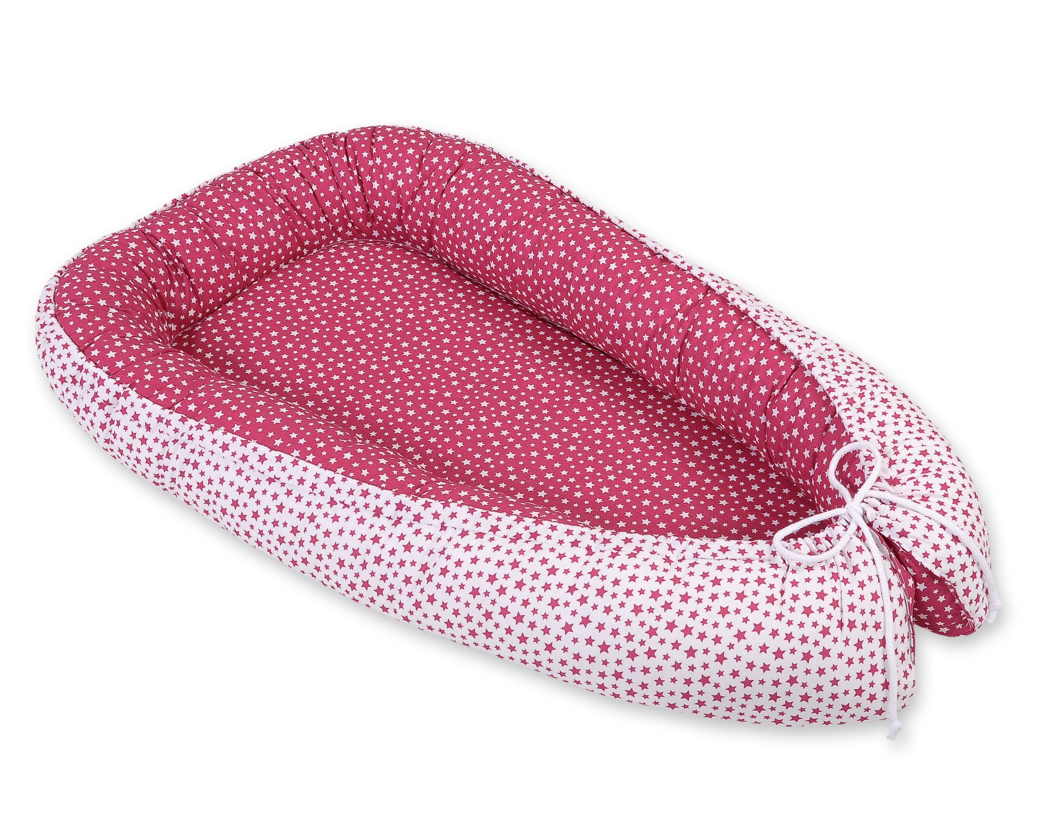 Baby nest double-sided Premium Cocoon for infants BOBONO- wine red stars