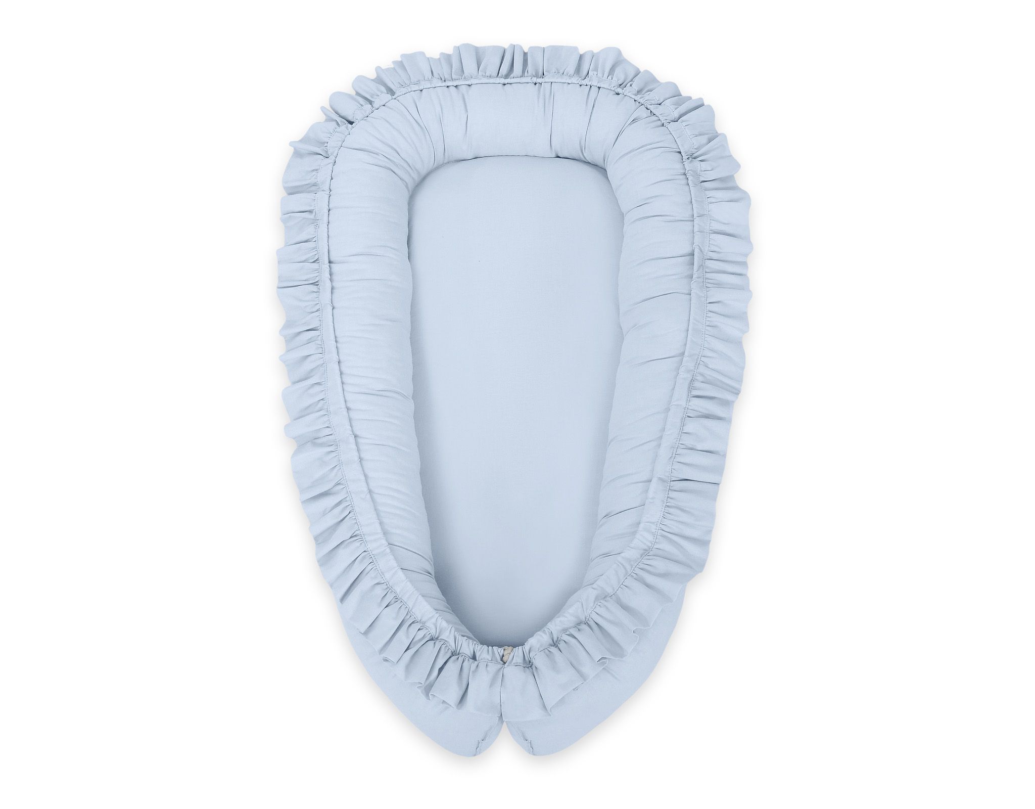 The baby cocoon is a great solution for the first months of baby’s life. The cocoon is a nest for sleeping, it is smaller and cozier than a cot, the baby feels safe in it like in mummy’s belly. The cocoon aims to limit the space around the baby so that he can gradually move from the embryonic position to an upright position. When the baby sleeps straight away in the cot after birth, he may feel uncomfortable because he suddenly finds himself in too much space. The soft and high edges of the cocoon wrapping around the baby protect the baby and muffle loud noises, ensuring a peaceful sleep.