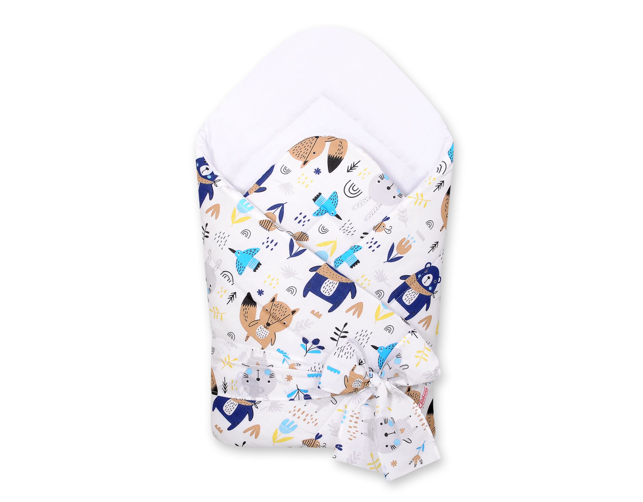 – three-layered – the outer layer is a colourful 100% cotton fabric, certified, nice to touch. The inside is also cotton, certified. The cotton fabric is Ökotex approved, with a special grade I siliconised fleece filling in between. The non-woven fabric is Ökotex certified, which confirms its superior hypoallergenic qualities and safety for babies. The non-woven fabric is selected to ensure the best thermal parameters without the risk of overheating the baby and at the same time to be light and breathable.
