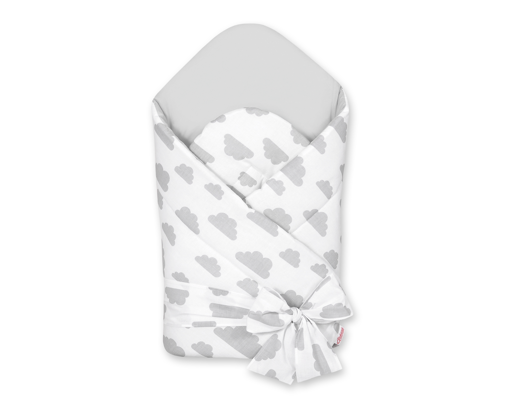 Double-sided baby nest with stiffening with bow – clouds gray/gray