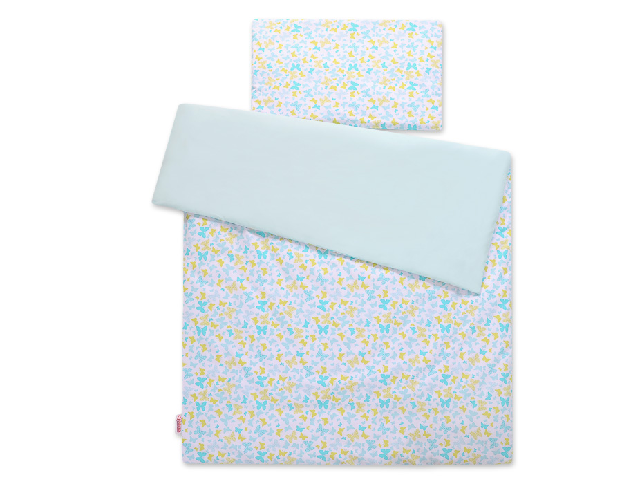 Baby cotton bedding set 2-pcs 135×100 cm- blue butterflies