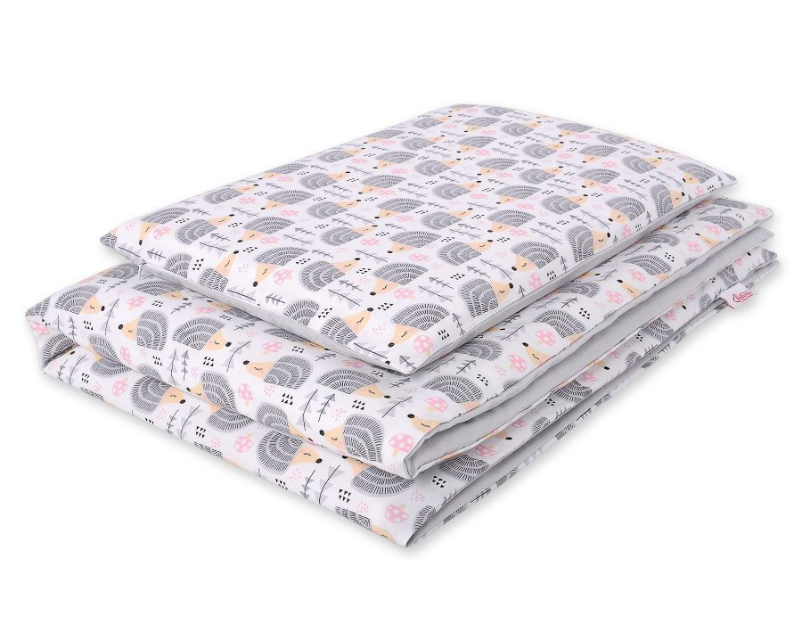 Baby cotton bedding set 2-pcs 135×100 cm- hedgehogs grey