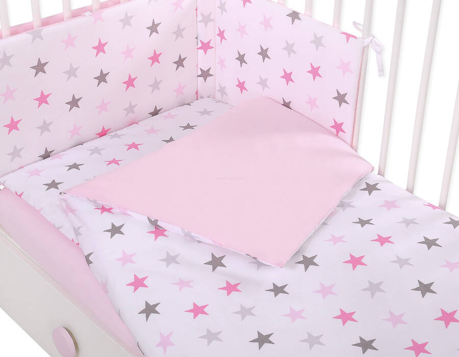 Baby cotton bedding set 2-pcs 135×100 cm- stars pink -gray/ pink