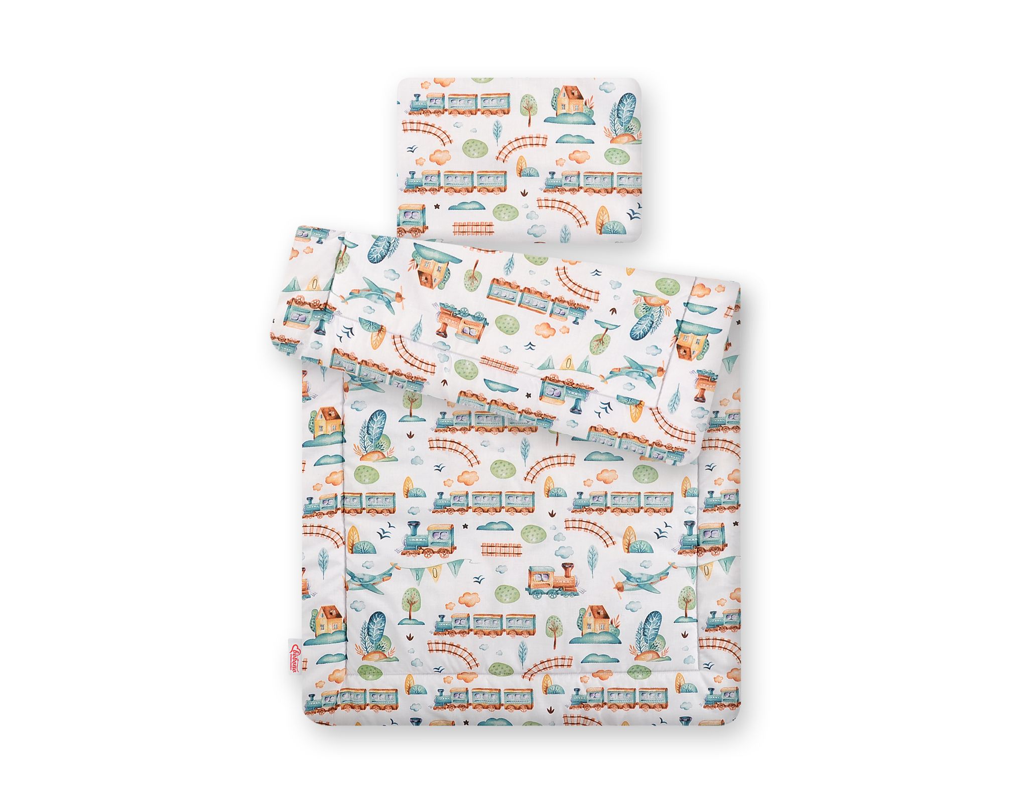 Bedding set 2-pcs 75x100cm NEWBORN – turquoise train