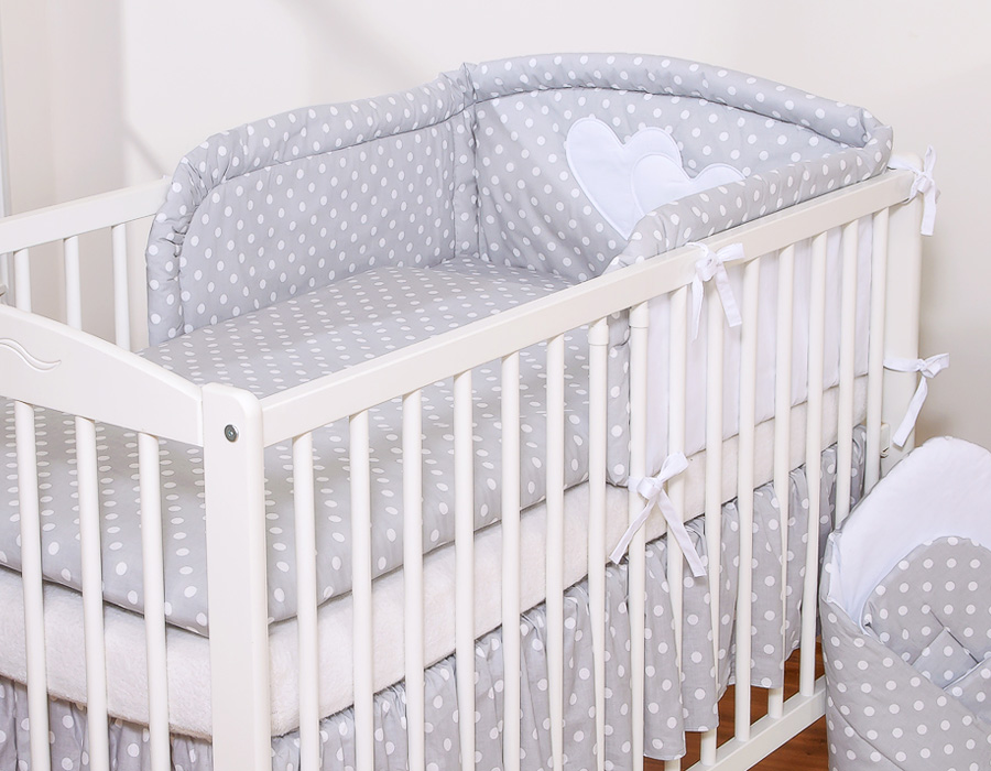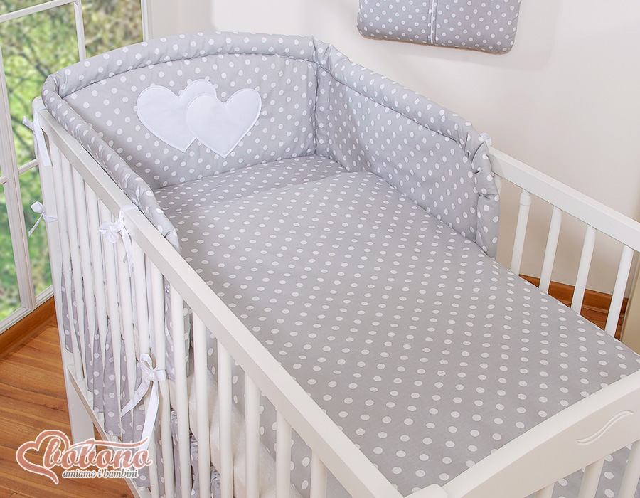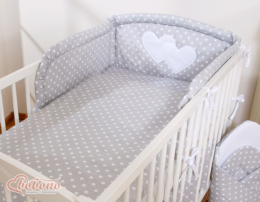 Bedding set 2-pcs- Hanging Hearts white dots on grey