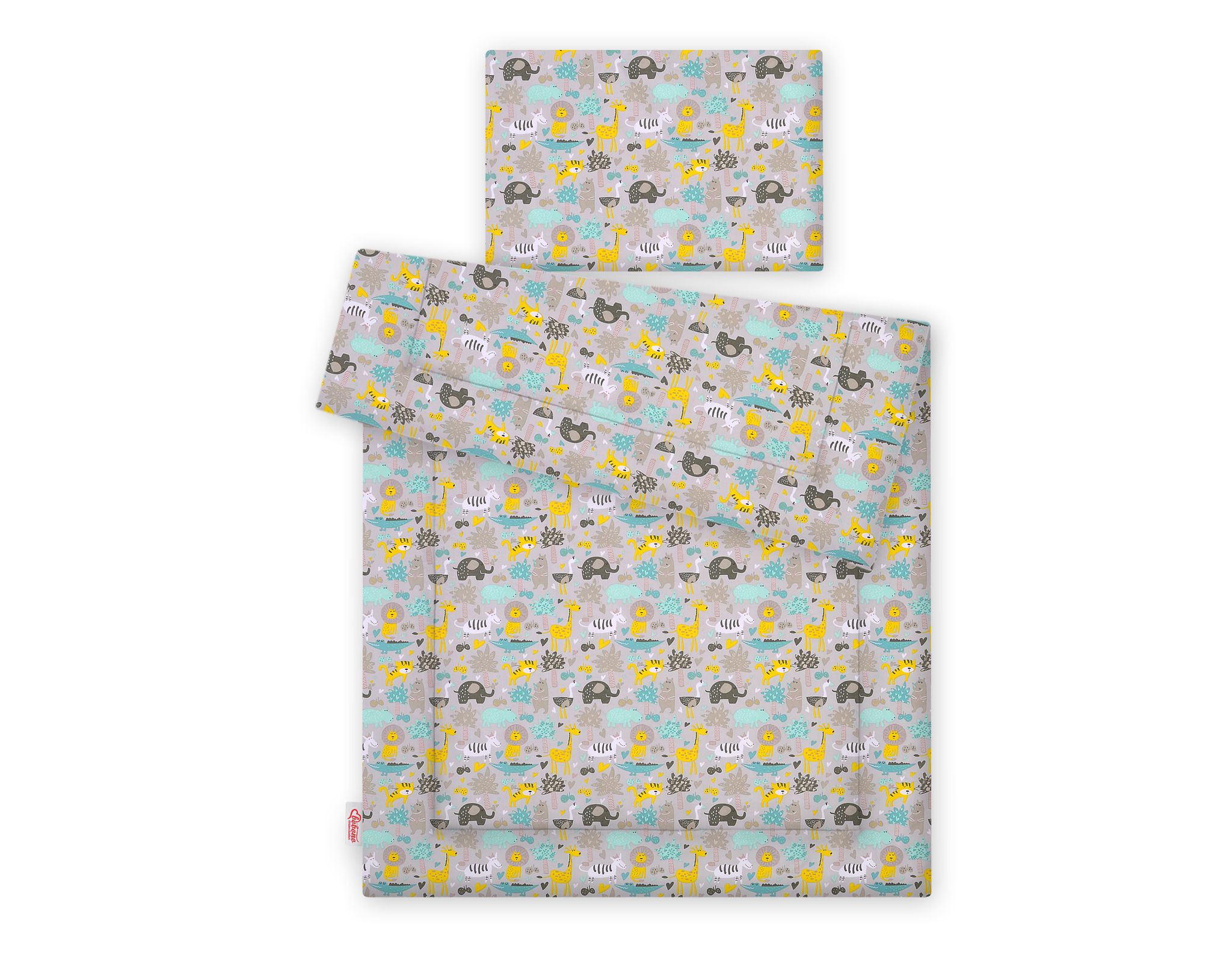 Bedding set 2-pcs with filling 120×90 cm – gray-mint animals