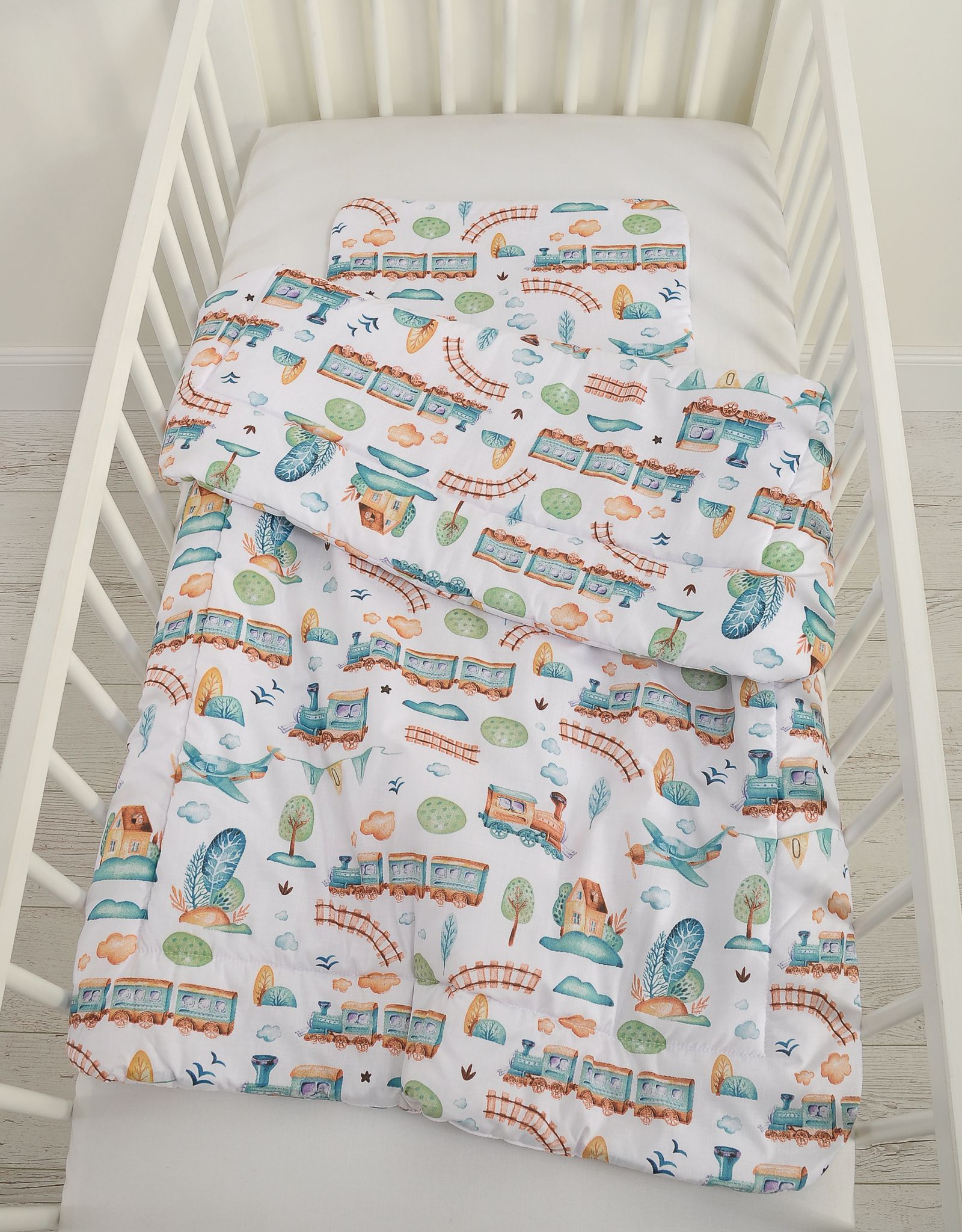 → Comforter cover 90x120cm (not removable), outer fabric made of 100% cotton. Cover with silicone filling. Soft and airy, with specially selected weight, so that the comforter is not too thick (which may be harmful to babies) and at the same time provides optimal softness and elasticity.