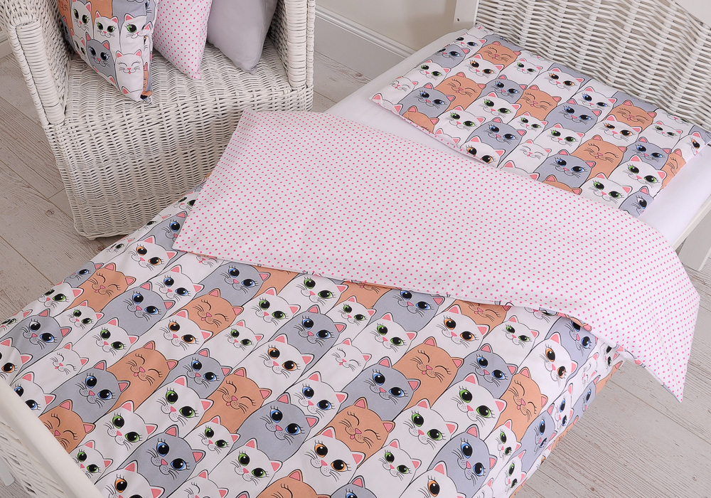 Bedding set 2pcs 100×135 cm- gray-pink cats