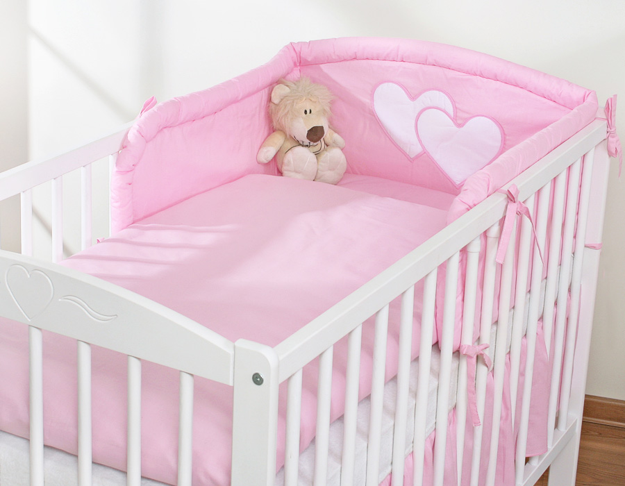 Bedding set 3-pcs- Hanging Hearts white polka dots on pink