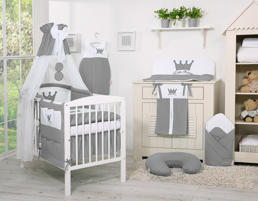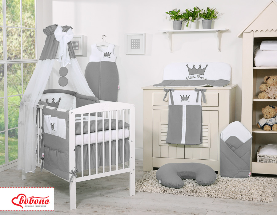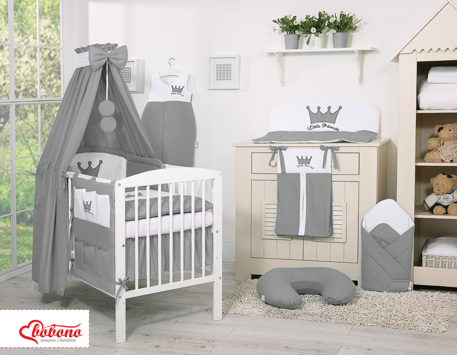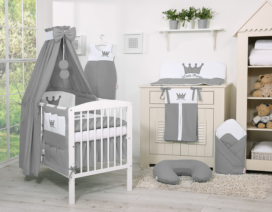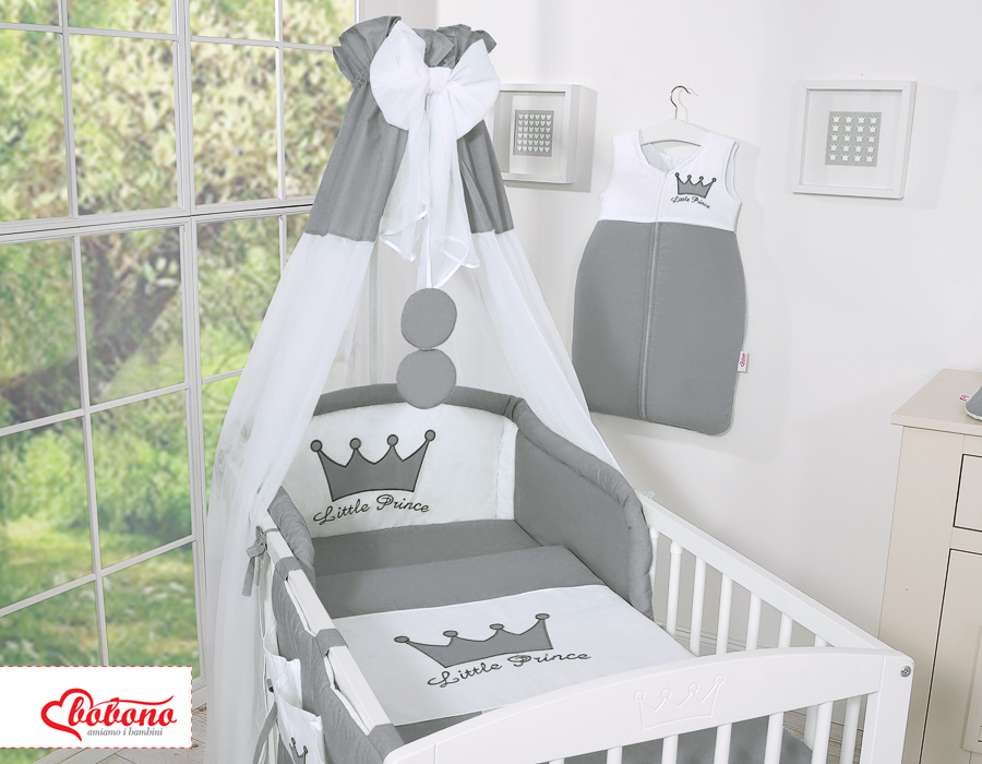 Bedding set 5-pcs with canopy- Little Prince/Princess anthracite