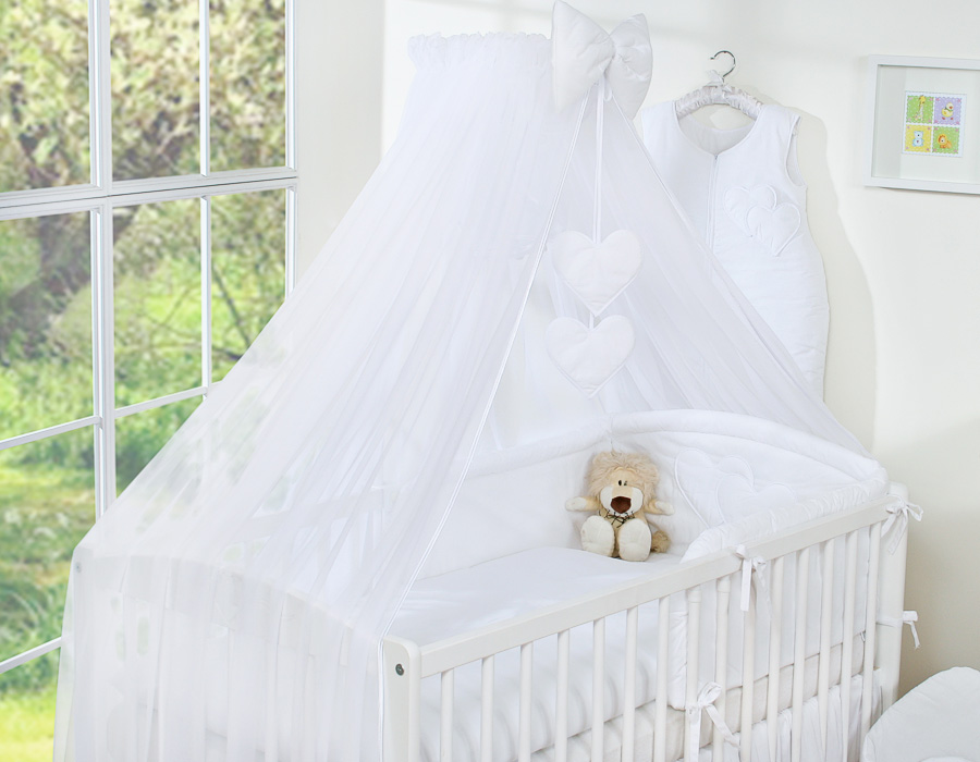 Bedding set 5-pcs with mosquito-net- Hanging Hearts white