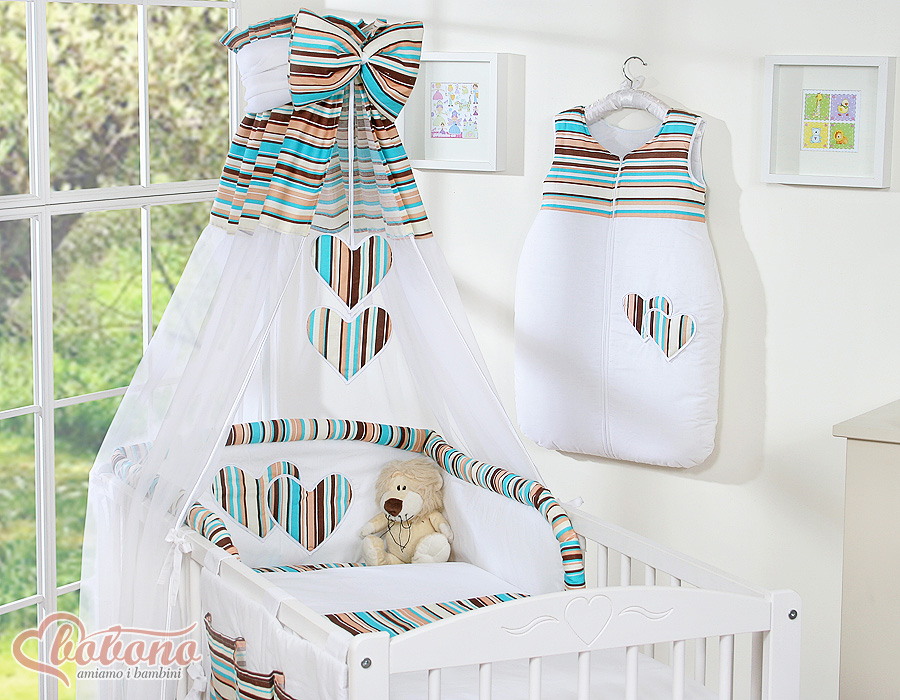 Bedding set 5-pcs with canopy- Hanging Hearts white