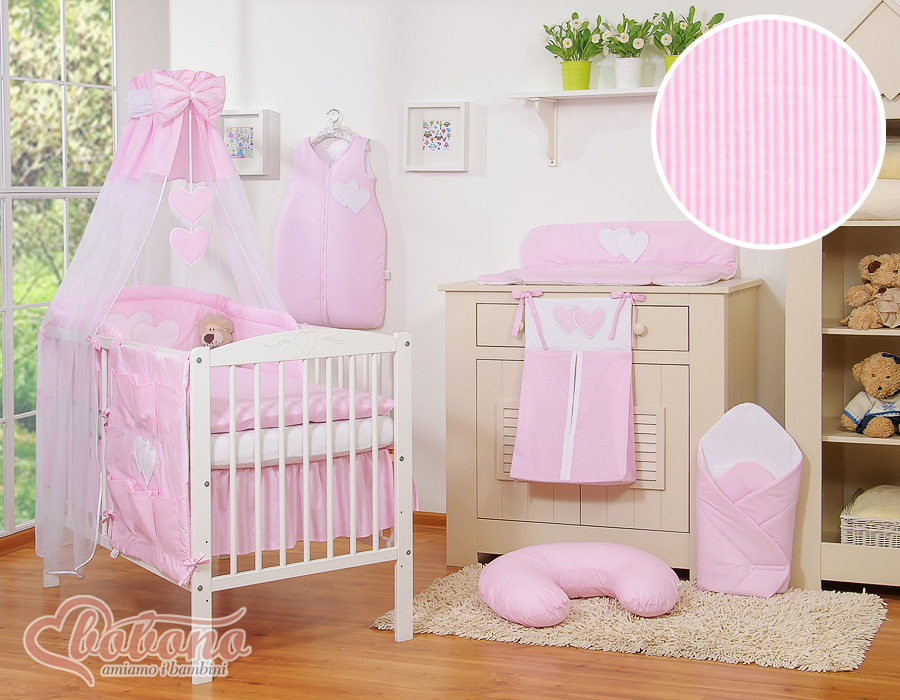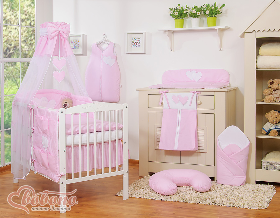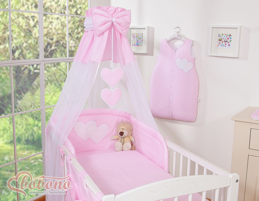 Bedding set 5-pcs with canopy- Hanging Hearts pink