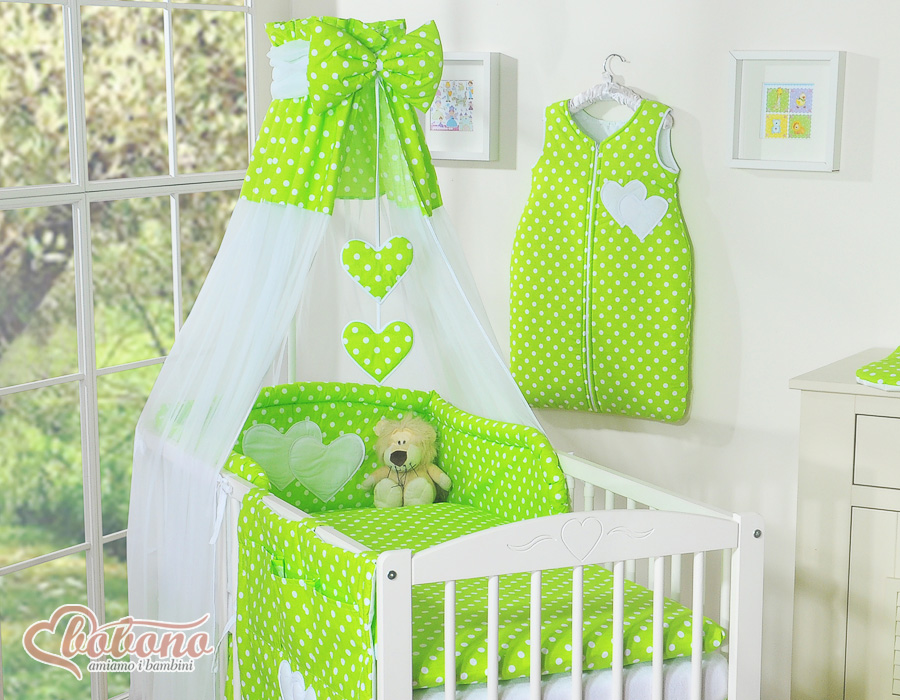 Canopy made of Chiffon- Hanging Hearts white dots on green