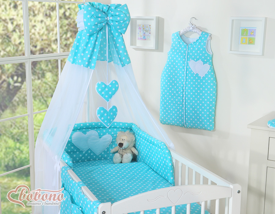 Bedding set 5-pcs with canopy- Hanging Hearts blue