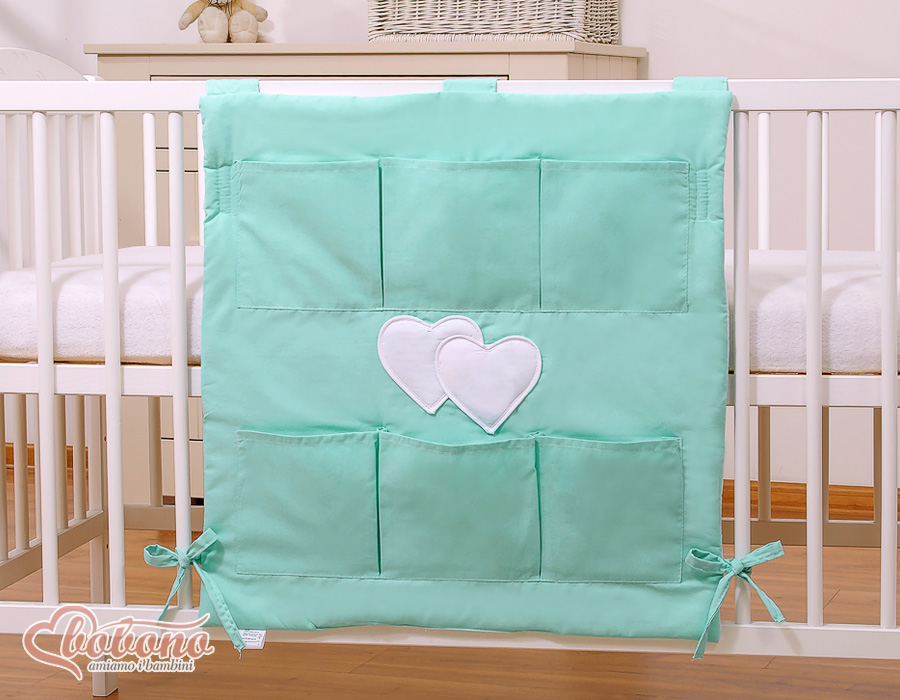 Cot tidy with 6 practical storage bags for toys, diapers, wipes, pacifiers, or any other essentials.