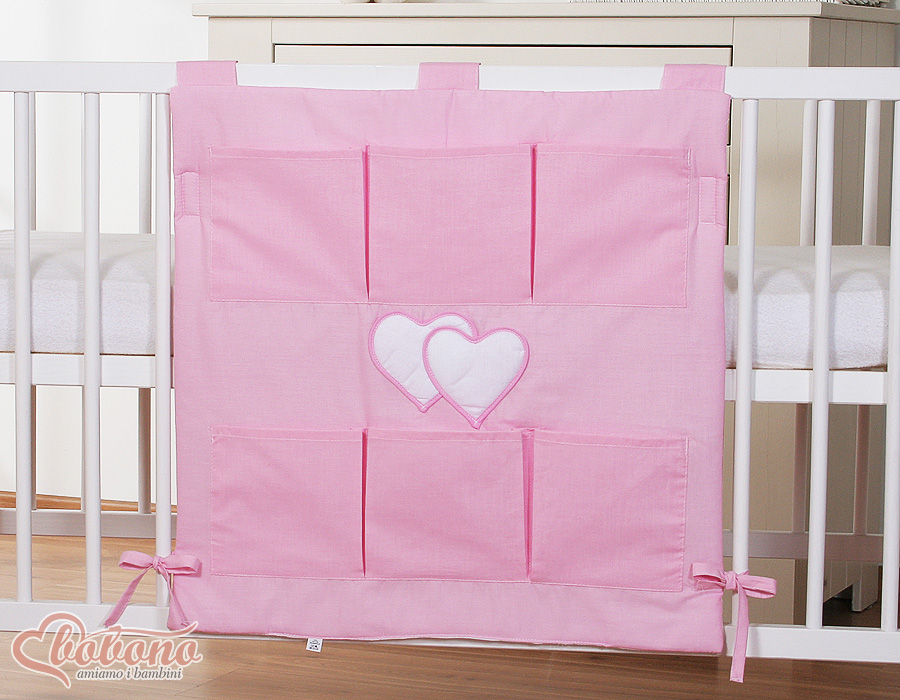 Cot tidy with 6 practical storage bags for toys, diapers, wipes, pacifiers, or any other essentials.