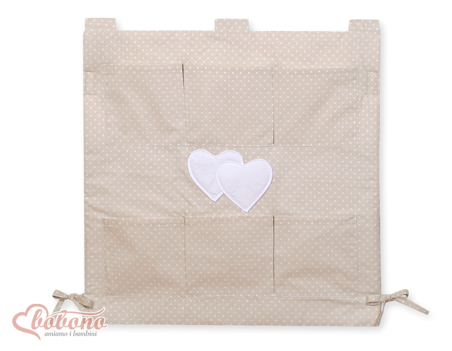 Cot tidy- Hanging Hearts white polka dots on beige