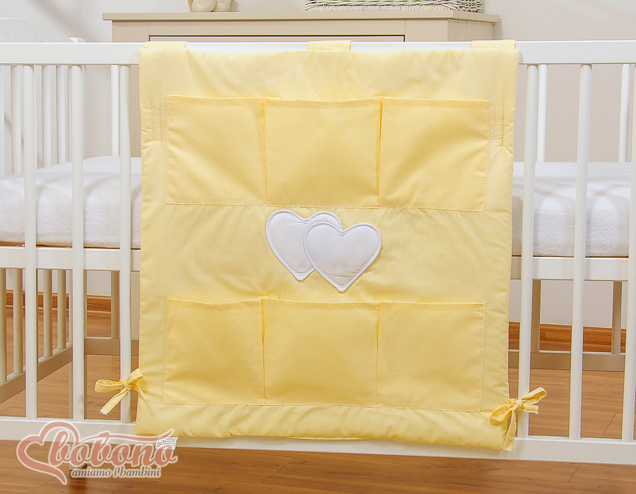 Cot tidy with 6 practical storage bags for toys, diapers, wipes, pacifiers, or any other essentials.