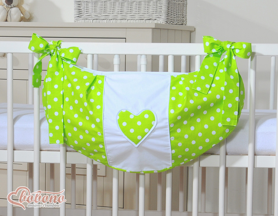Toys bag- Hanging Hearts white dots on green