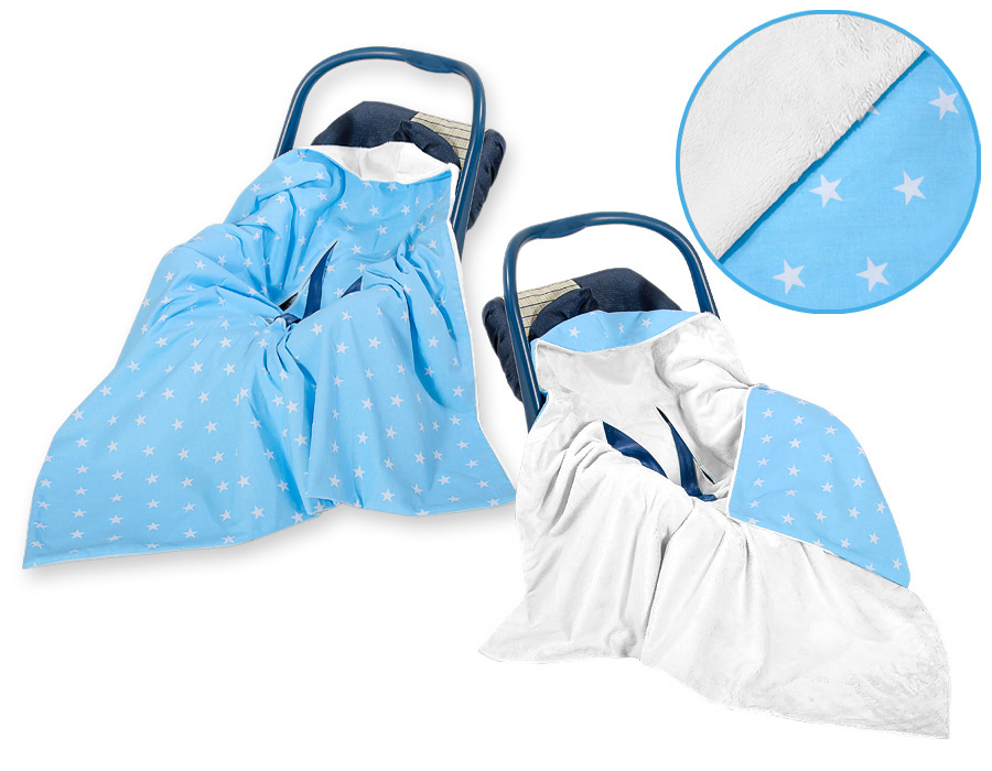 Exceptionally soft, warm cotton blanket for the car seat to ensure complete comfort for your baby during the car ride. Made from soft minky material and colourful 100% cotton.