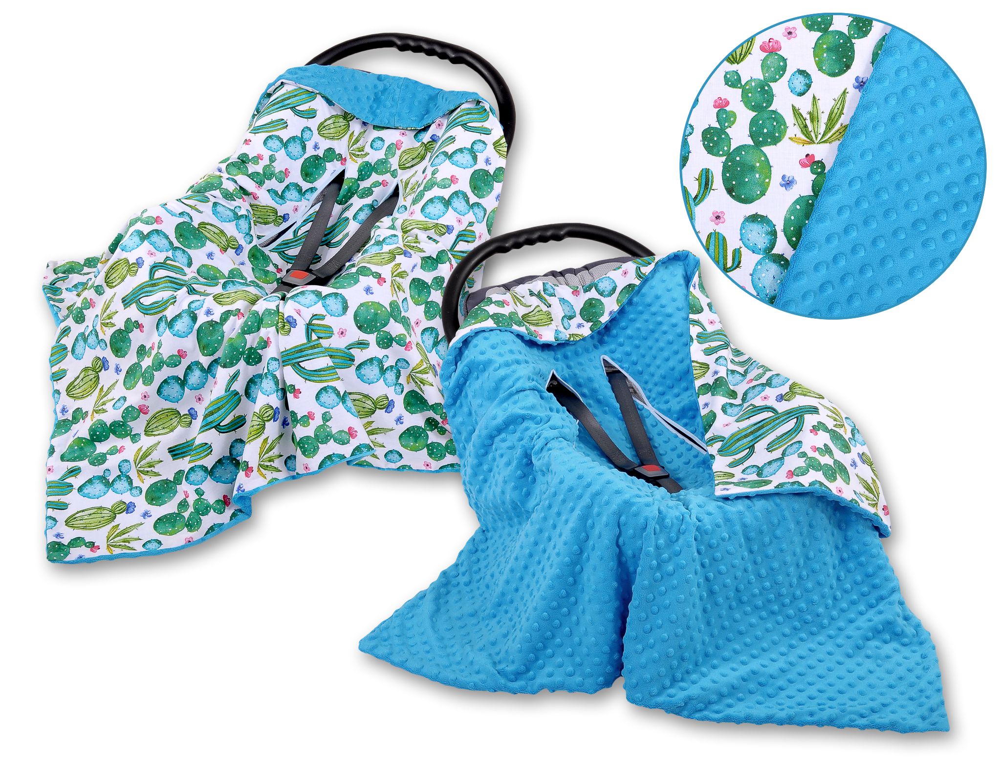 Big double-sided car seat blanket for babies – cactus