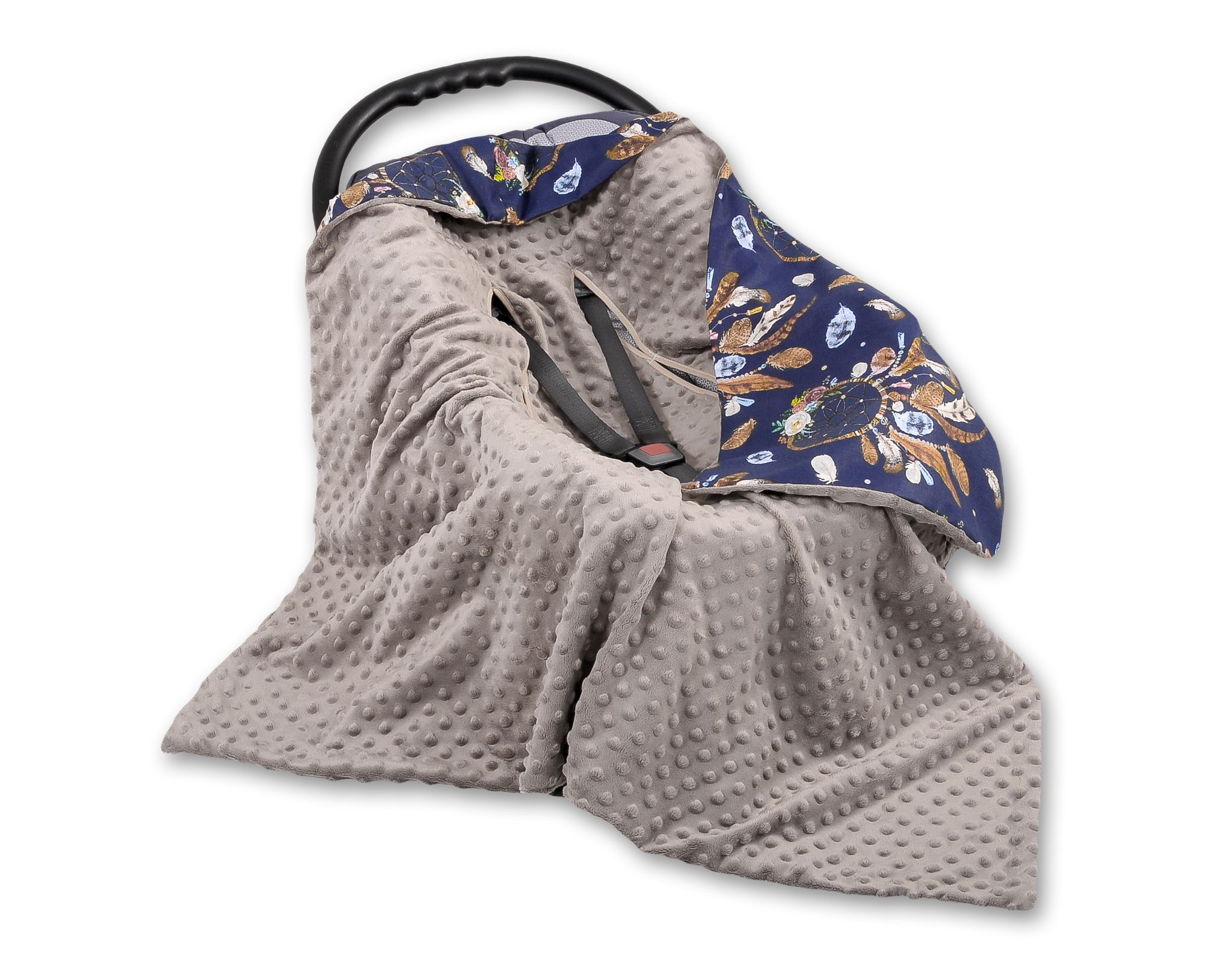 Big double-sided car seat blanket for babies – dream catchers dark blue
