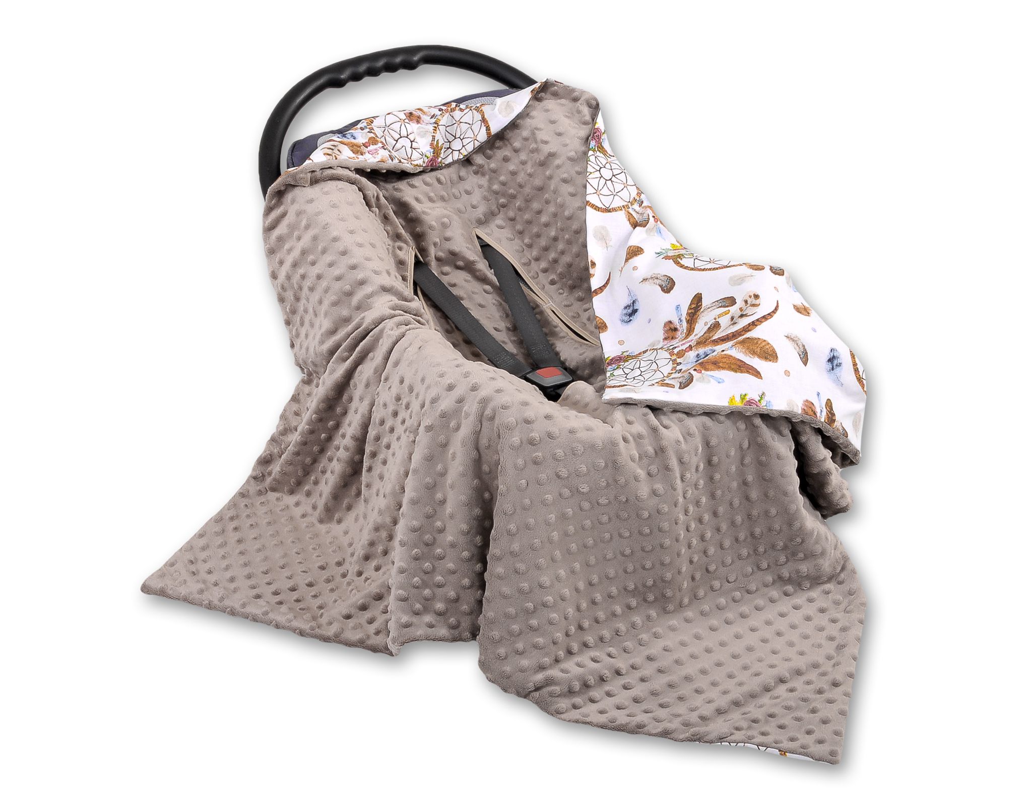 Exceptionally soft, warm cotton blanket for the car seat to ensure complete comfort for your baby during the car ride. Made from soft minky material and colourful 100% cotton.