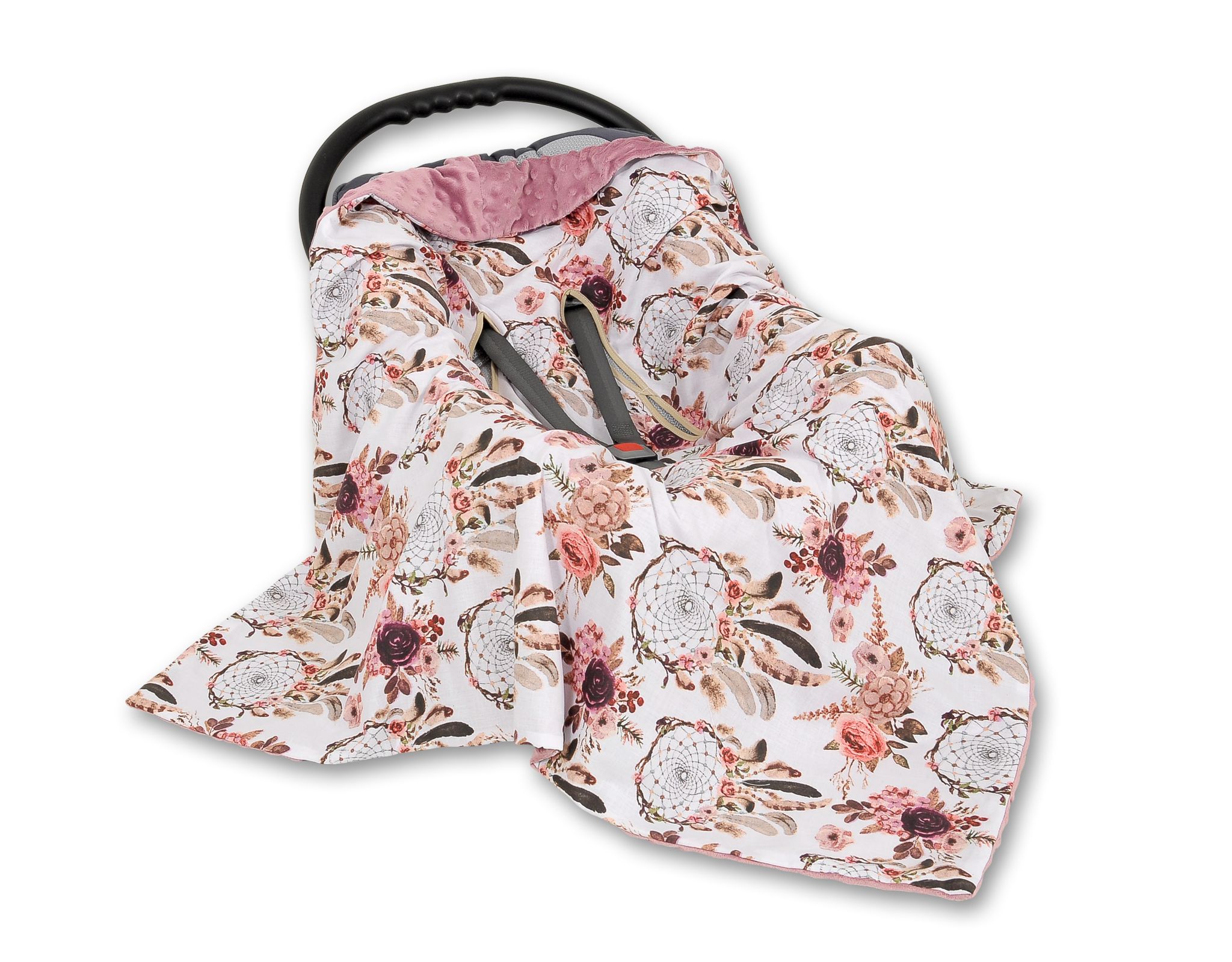 Big double-sided car seat blanket for babies – flower dream catchers/pastel violet