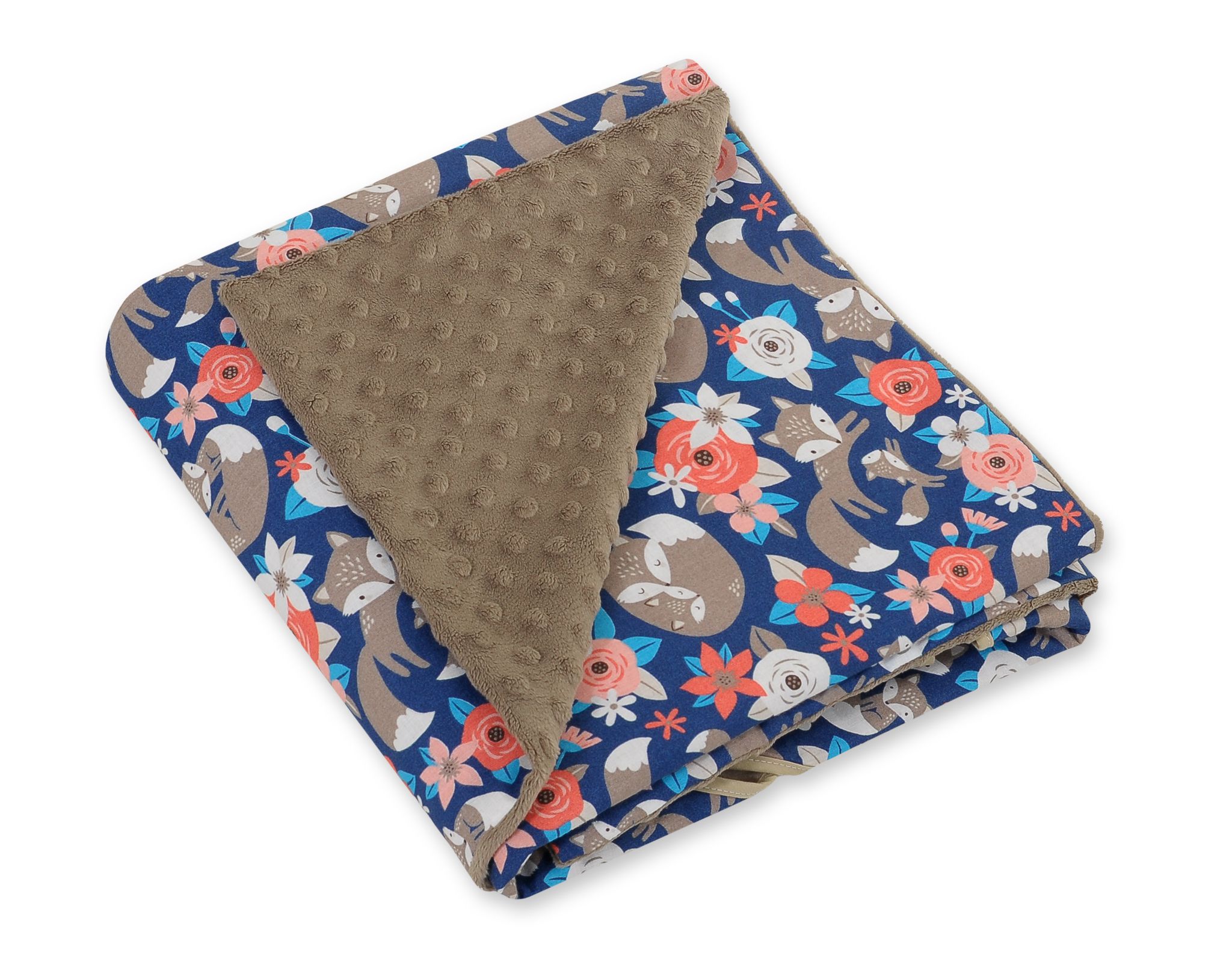 Big double-sided car seat blanket for babies – fox family on blue/brown