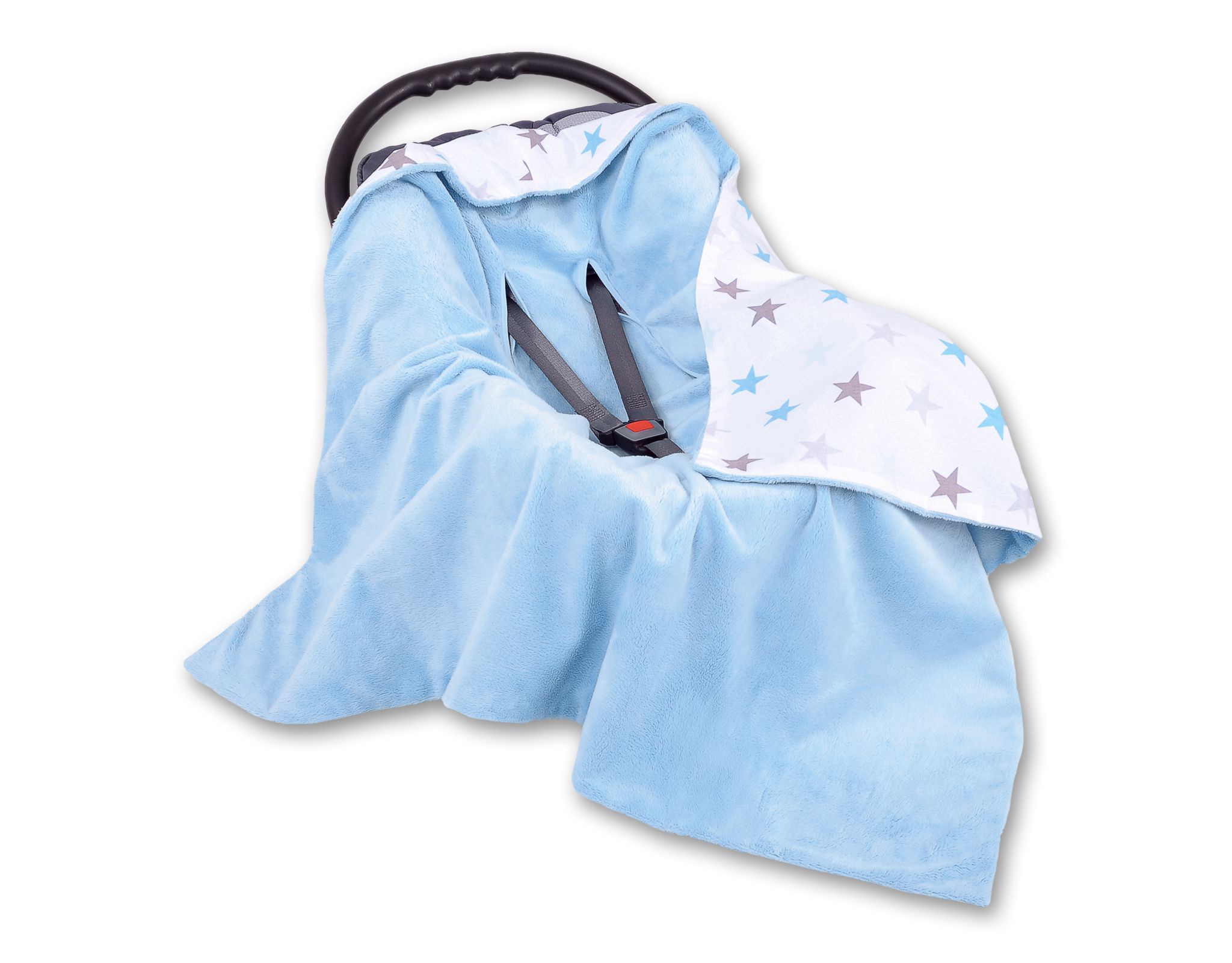 Exceptionally soft, warm cotton blanket for the car seat to ensure complete comfort for your baby during the car ride. Made from soft minky material and colourful 100% cotton.